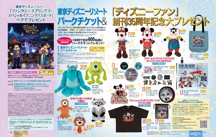 ディズニー社との提携30周年を迎えた劇団四季のディズニーミュージカル特集、宮舘涼太さんがスペシャルサポーターを務める「ディズニー・オン・アイス」や、9月開幕予定の「ディズニー・オン・クラシック 〜まほうの夜の音楽会 2025」読者限定先行予約などのライブエンターテイメントや、全国で手に入るディズニーグッズ最新情報なども満載です。