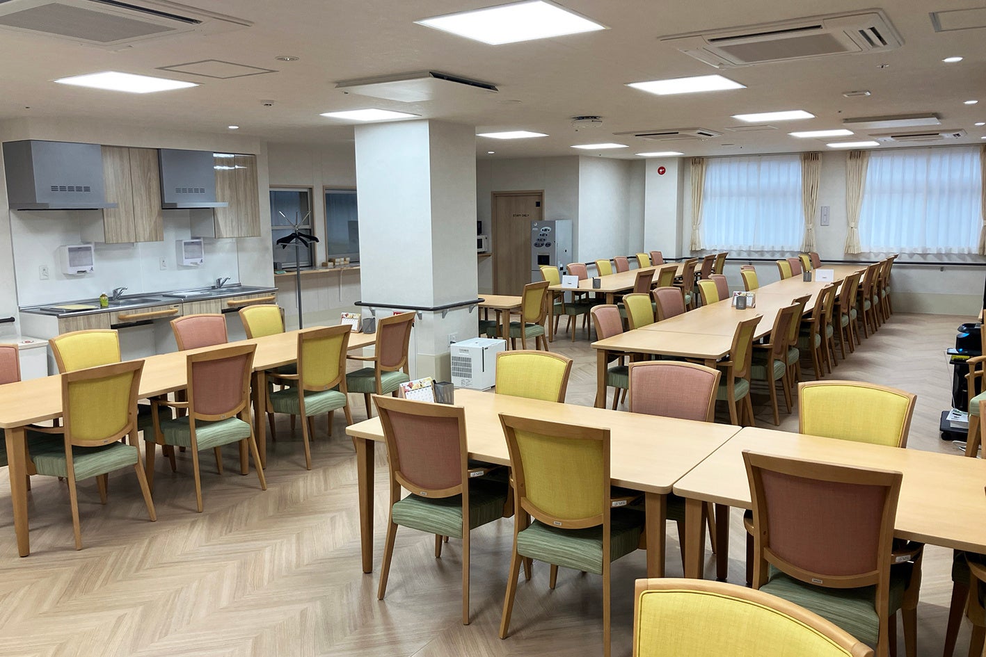 共用施設:食堂・ラウンジ・図書コーナー・相談室・洗濯室・個浴室・介護浴室・脱衣室・多目的トイレ