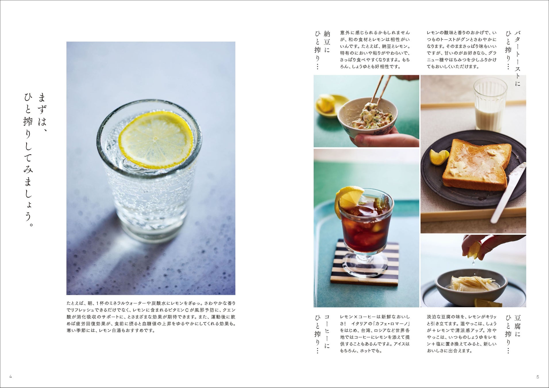 「しょうゆやみそ、特に白みそとレモン、だしとレモン、生クリームとレモン、スパイスとレモン、オイスターソースとラー油とレモン。意外かもしれませんが、どの組み合わせも最高においしい! 本書では、こうしたレモンの新しいおいしさをお伝えしています。また、私が日々作っている保存食も、使いきりやすく、また作ろうと思える少なめの分量でご紹介しました。あればきっと役に立ち、料理上手になった気分も味わえるはずです。」(「はじめに」より)