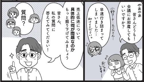 ここで、本書の著者である小野コーチがゆうみさんに助け舟をだします。チームメンバーたちは小野コーチのさまざまな質問に答えていきます。