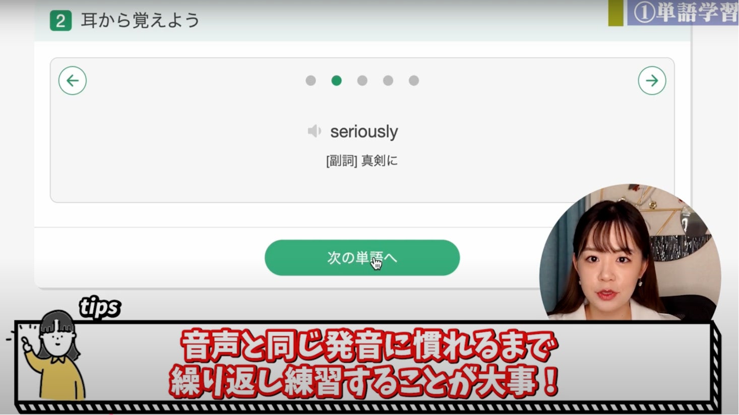 ・自身の英語レベルに合わせた語彙を、リスニング&スピーキングしながら学習できる