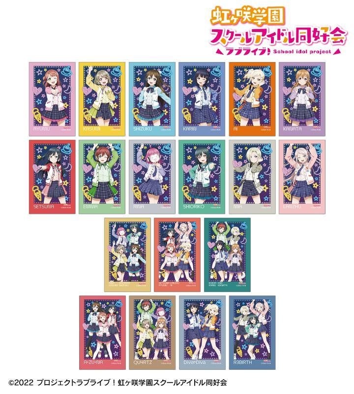 種類 :全12種(上原歩夢、中須かすみ、桜坂しずく、朝香果林、宮下 愛、近江彼方、優木せつ菜、エマ・ヴェルデ、天王寺璃奈、三船栞子、ミア・テイラー、鐘 嵐珠)