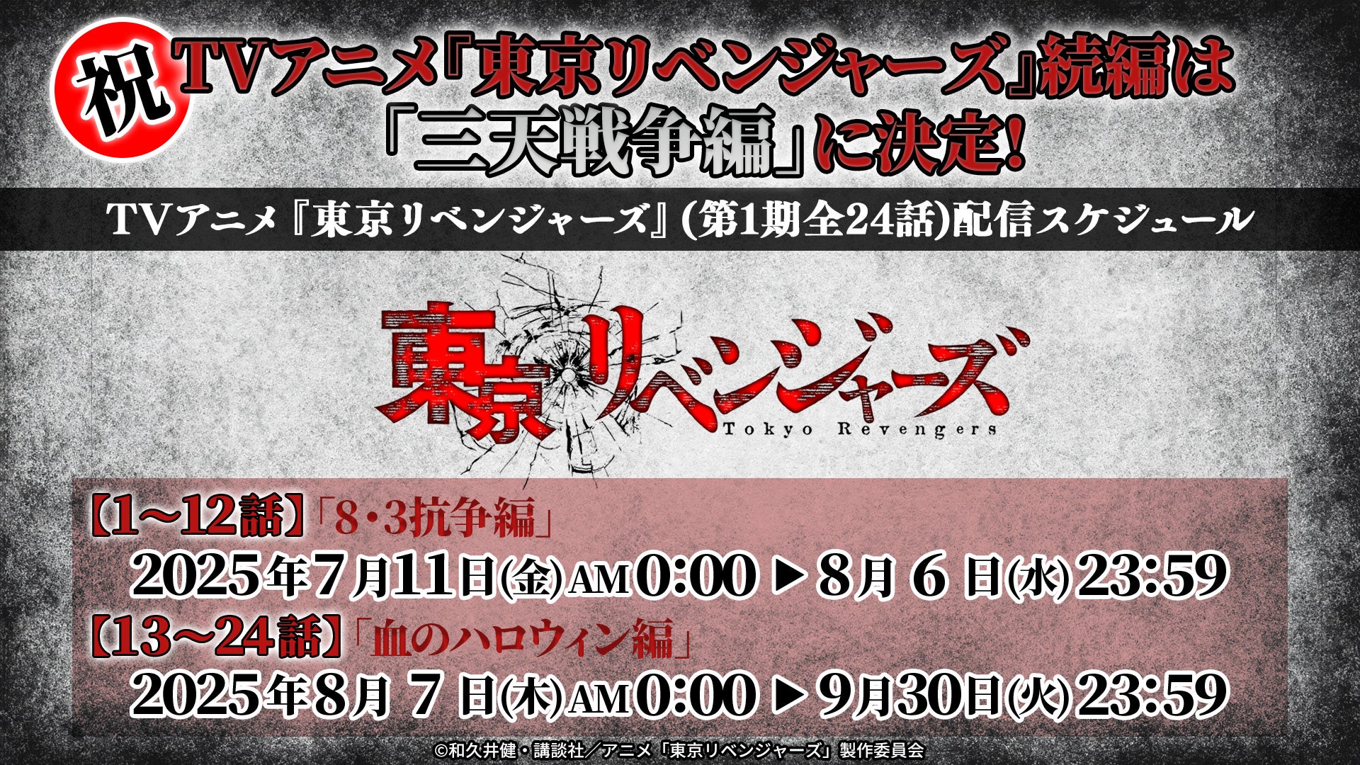 TVアニメ「『東京リベンジャーズ』 第1期 順次公開!【1~12話】2025年8月6日(水)まで【13~24話】9月30日(火)まで」: