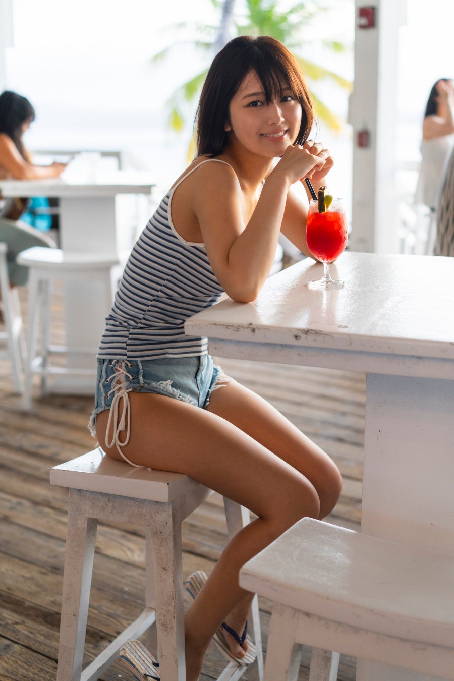 人生初のグアムでした! グラビア撮影で海外に行くのも今回が初めてだったので、全てが新鮮でとても楽しく撮影できました! それに、外での撮影の時に通りすがりの現地のおじさんが「Beautiful girl!」って声をかけてくれたり、撮影している様子を車を停めて見てくれたりする方がいて現地ではモテモテでした! とてもいい気持ちで撮影できました! 私、グアムでモテるかもしれません!