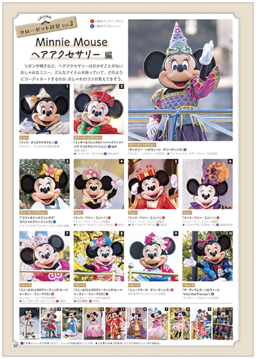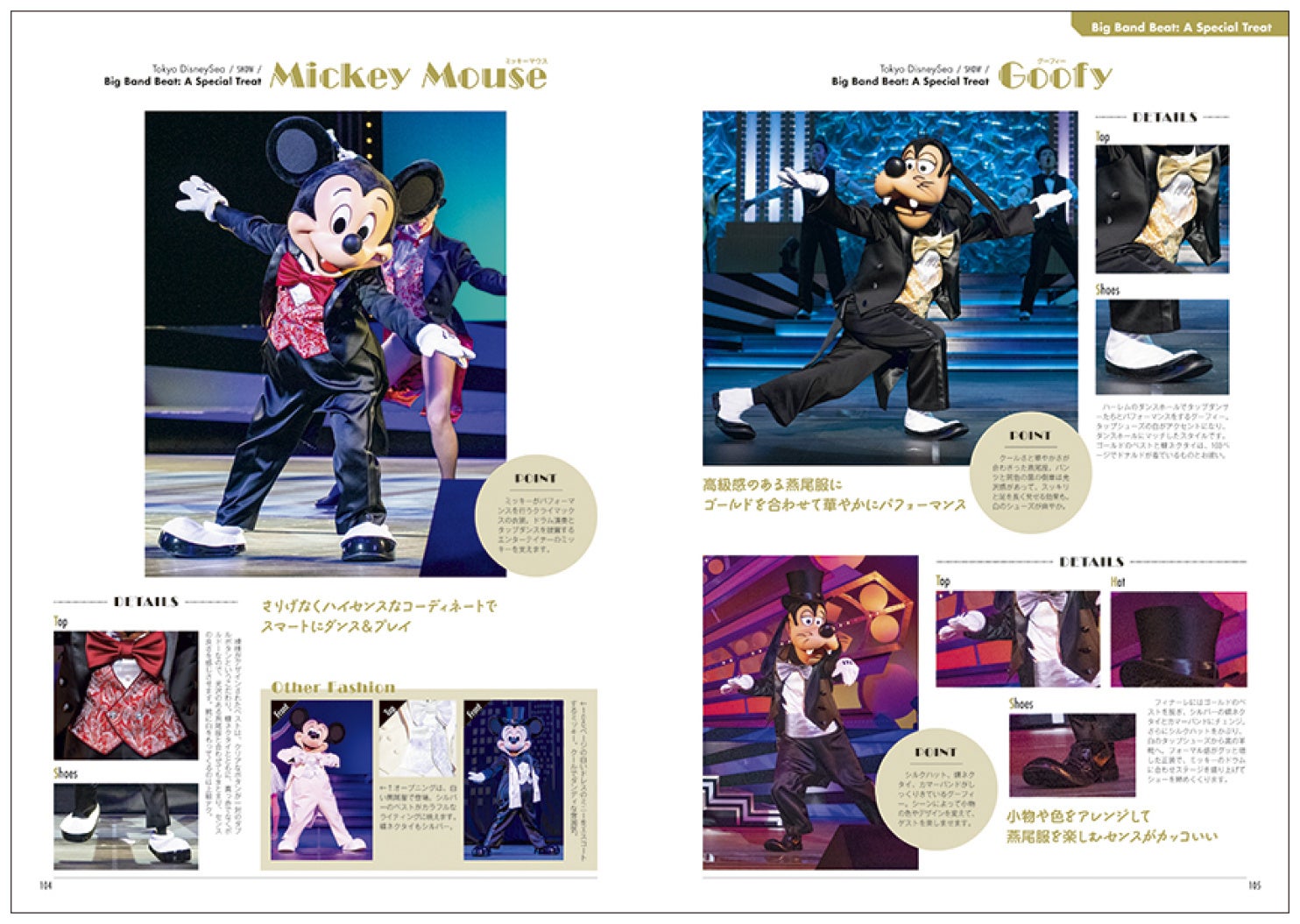 2025年6月末現在のパレードやショー、グリーティング施設でのファッションを、ミッキーマウスと仲間たちをメインにお届け。キャラクターたちのかっこいいドレス姿の細部のディテールもわかるコラム「クローゼット拝見」も必見です。