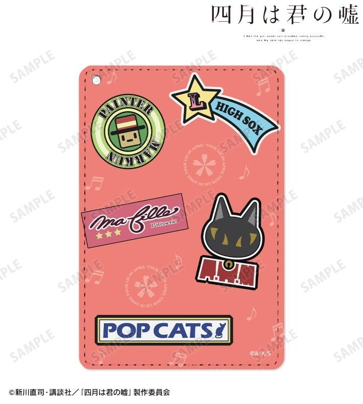 宮園かをりがバイオリンケースに貼っているステッカーや、作品ロゴの花モチーフを1ポケットパスケースに仕上げました。