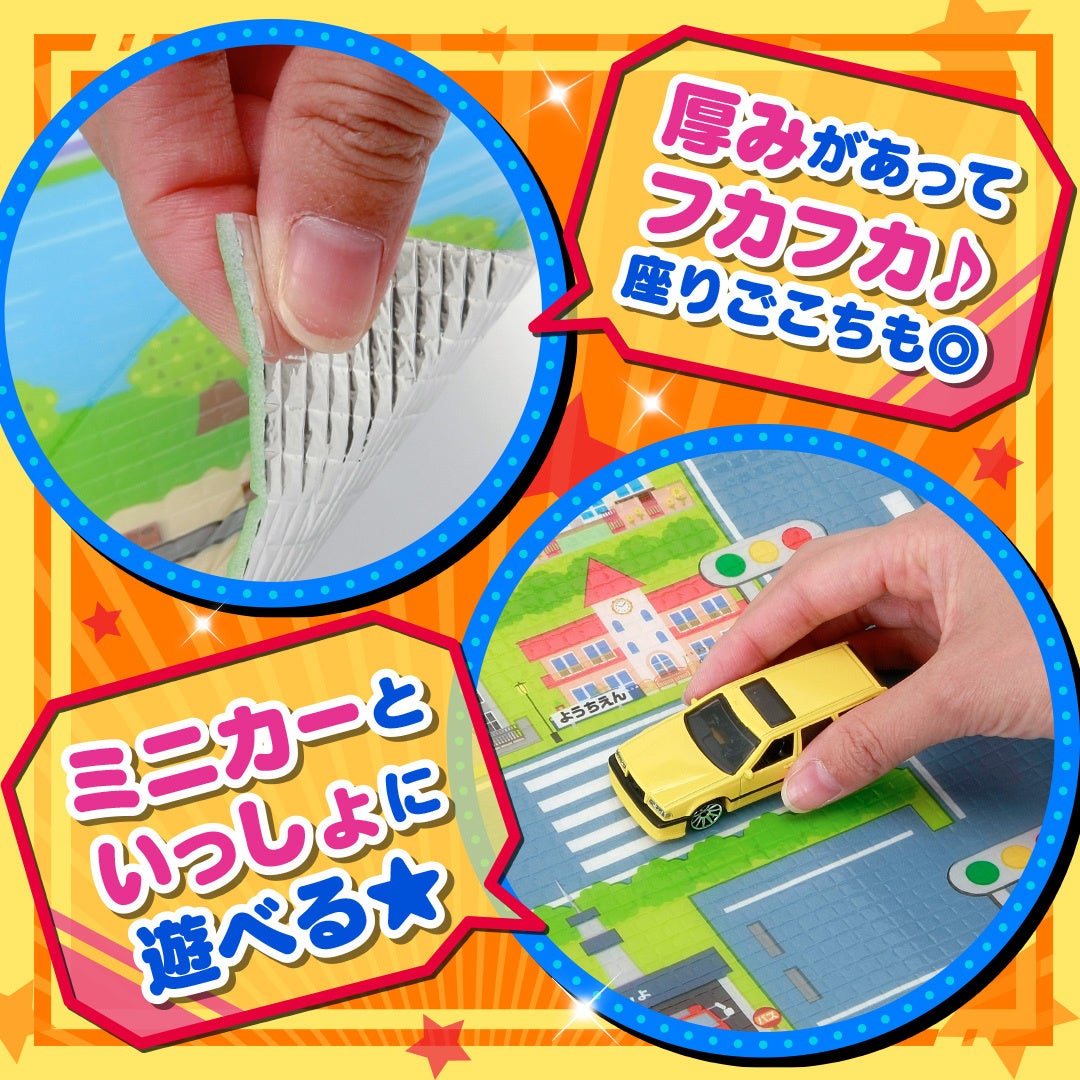90cm×60cmのビッグサイズなタウンマップ柄のレジャーシート☆ ミニカーを走らせて遊べます♪ 厚みがあるので座りごこちもよく、ピクニックなどにもピッタリです。