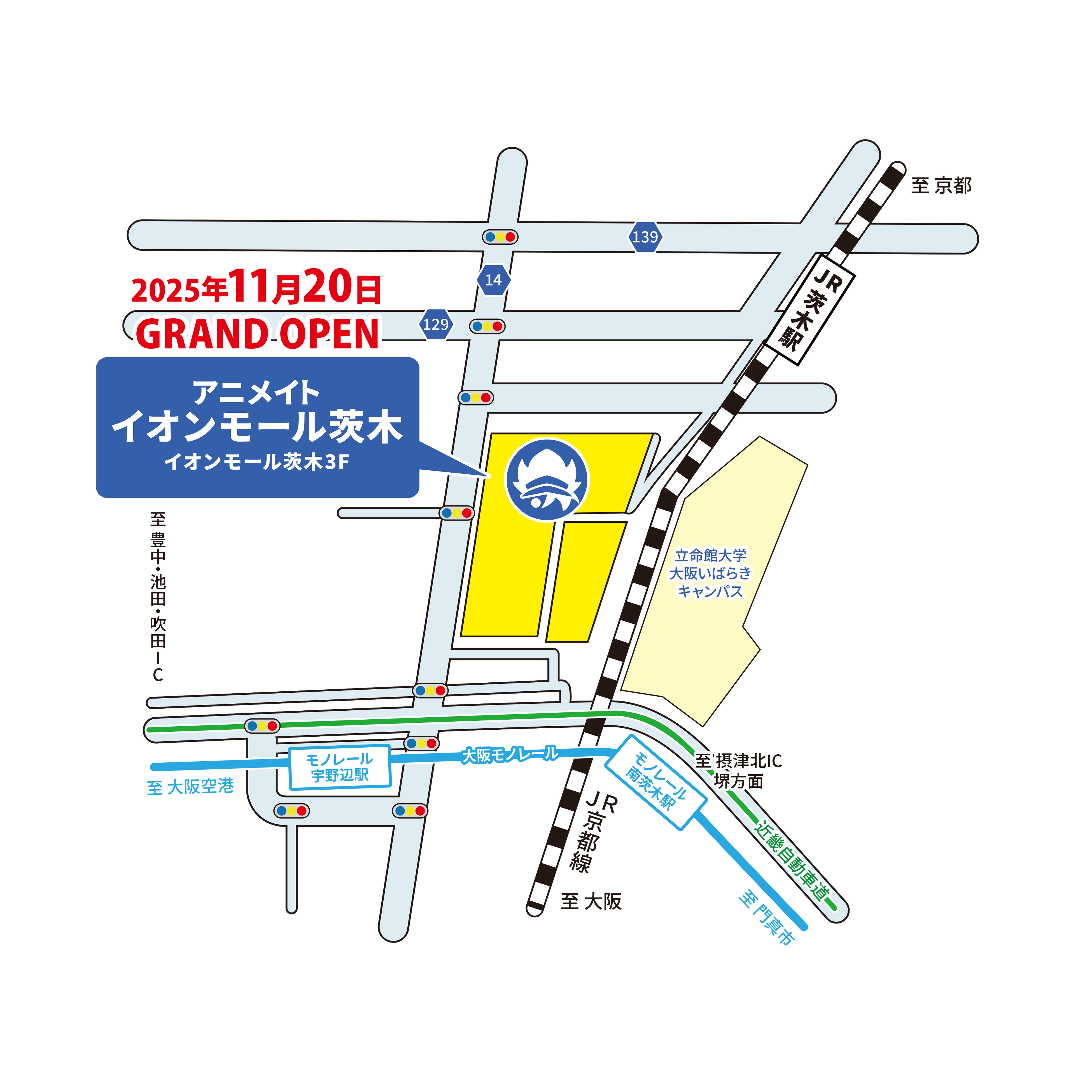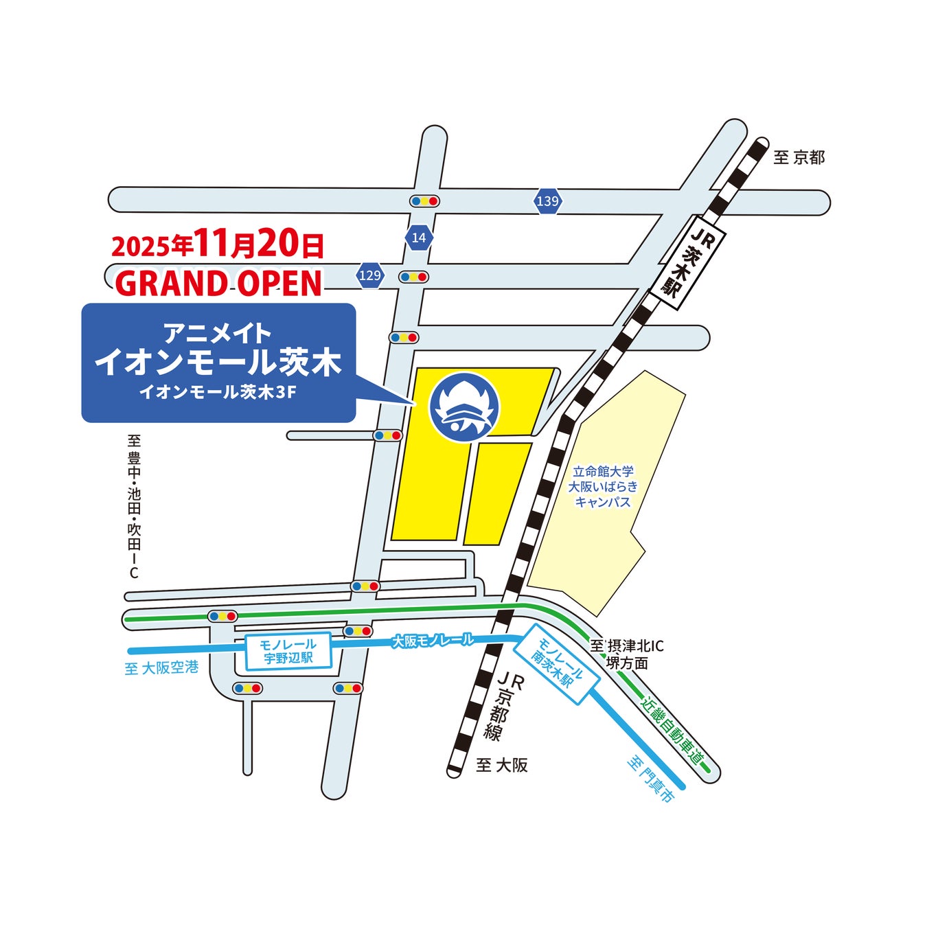 株式会社アニメイトは、2025年11月20日に「アニメイトイオンモール茨木」を大阪府茨木市内にある大型ショッピングセンター「イオンモール茨木」内にオープンいたします。