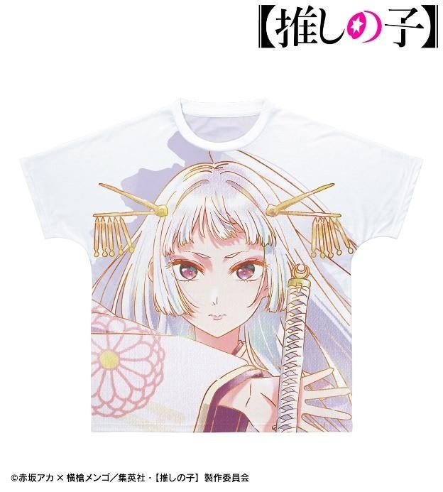 有馬かな(ツルギver.)、黒川あかね(鞘姫ver.)のイラストを新たなタッチで魅力的に表現し、作中で登場する舞台をイメージしたデザインのフルグラフィックTシャツに仕上げました。