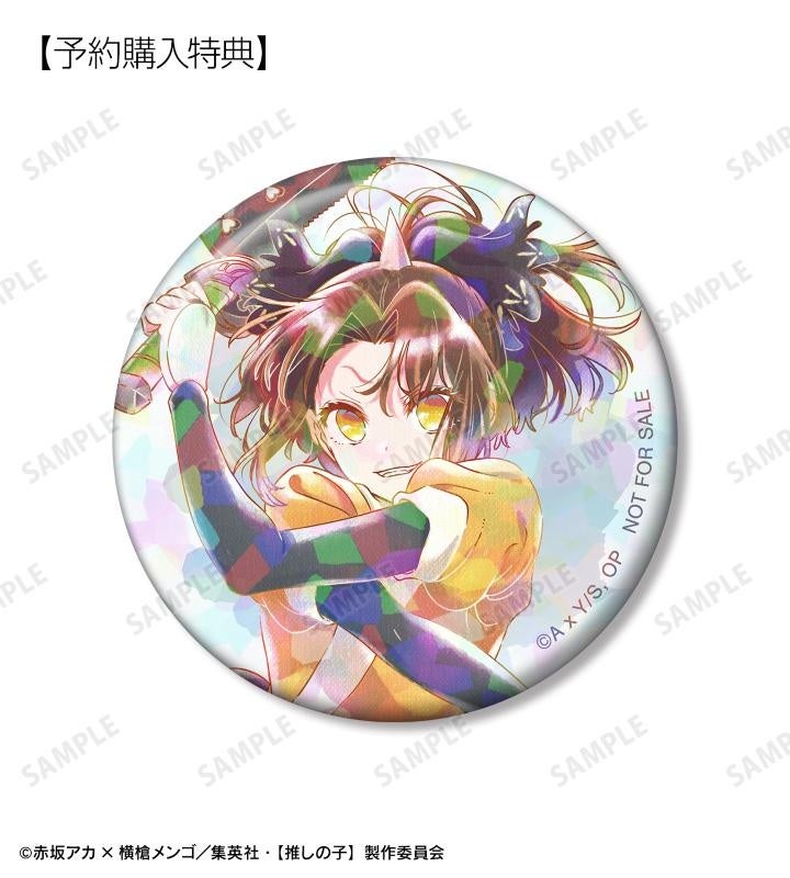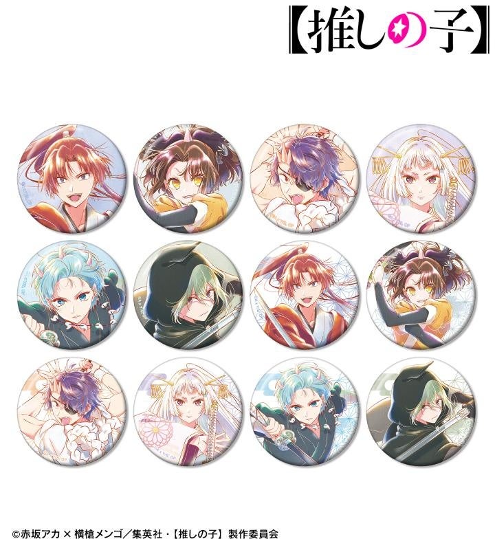 姫川大輝(ブレイドver.)、有馬かな(ツルギver.)、鳴嶋メルト(キザミver.)、黒川あかね(鞘姫ver.)、アクア(刀鬼ver.)、鴨志田朔夜(匁ver.)のイラストを新たなタッチで魅力的に表現し、作中で登場する舞台をイメージしたデザインの缶バッジに仕上げました。