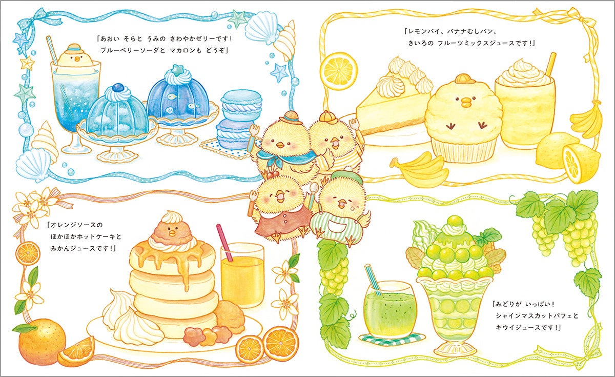 今回は7ひきのひよこの兄弟のリクエストに応えて、それぞれの好きな色のスイーツを作りますが…。