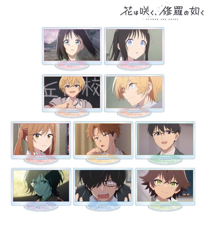 春山花奈、薄頼瑞希、夏江杏、冬賀萩大、秋山松雪、整井良子、箱山瀬太郎、猫井未唯子の印象的なシーンをアクリルスタンドに仕上げました。