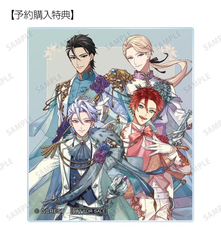 イベント「紅き黎明 落ちる花影」「君に誓う、愛のかたち」の御影、旭、シラヌイ、サイラス、ヒース、アレックス、ケントのイラストをアクリルスタンドに仕上げました。