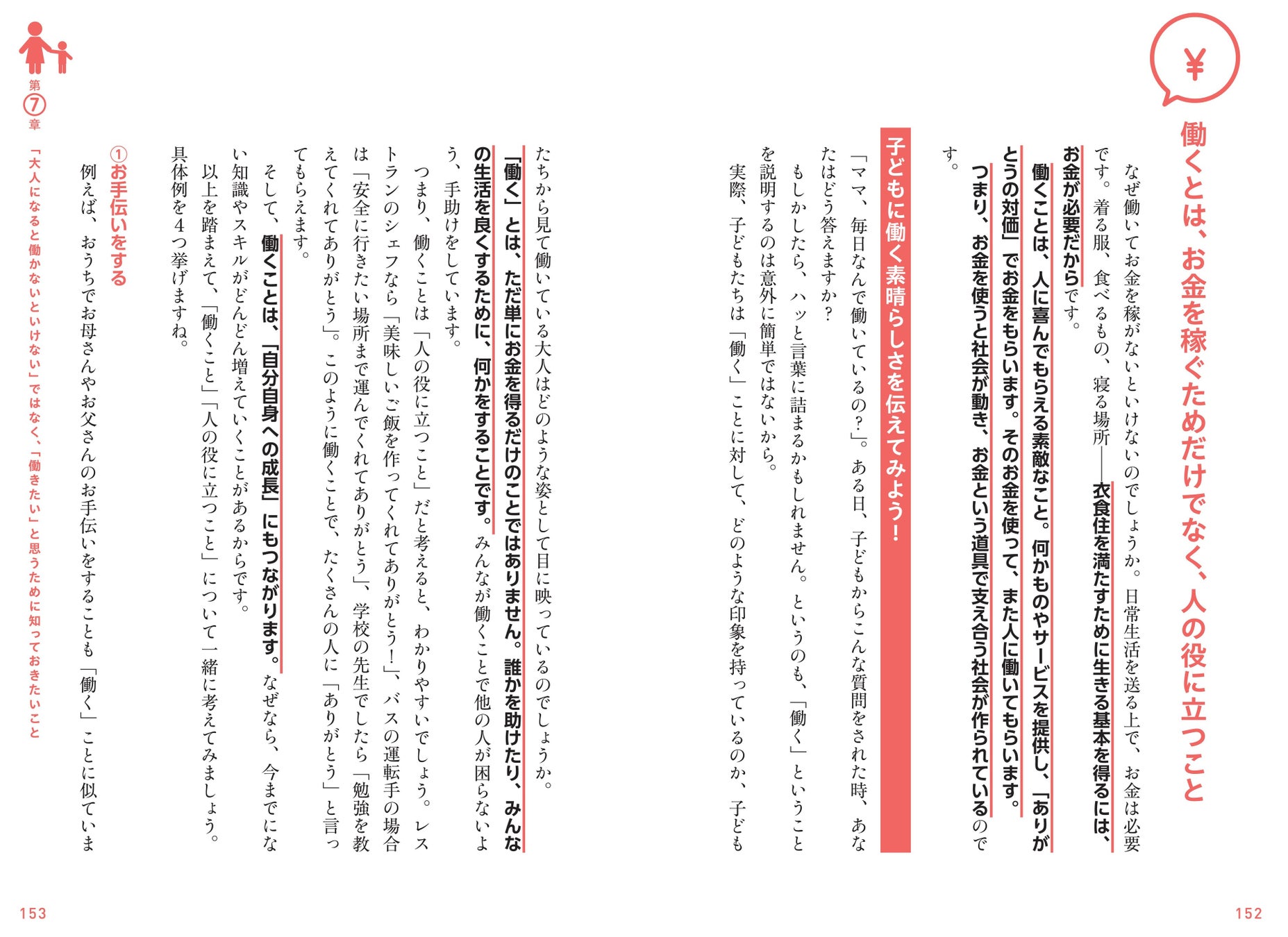 本書では、「家計」「おこづかい」「貯金と投資」「キャッシュレス」「働くとは?」「お金の正体」といった質問にどう答えればいいのかを、優しく丁寧に解説します。親子で一緒に考える、幸せに生きるために必要なお金の知識を1冊にまとめました。