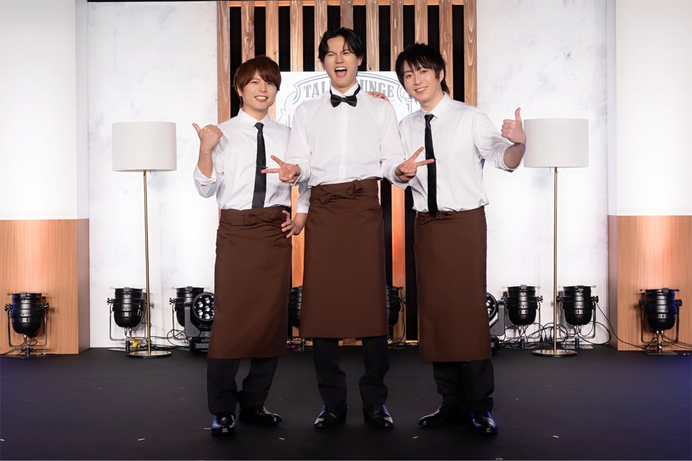 高級ホテルのラウンジをイメージした、オシャレなスタッフ風衣装で登場した江口さん、斉藤さん、花江さん、梅原さん、武内さん、仲村さん、野上さん。「トークラウンジ“SQ(スケア)”へようこそ」と進行を務める斉藤さんの言葉でイベントがスタートしました。