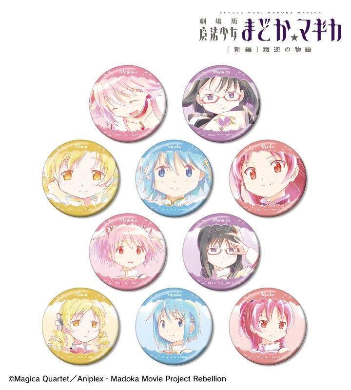 鹿目まどか、暁美ほむら、巴マミ、美樹さやか、佐倉杏子のイラストを新たなタッチで魅力的に表現し、メタリック仕様の缶バッジに仕上げました。