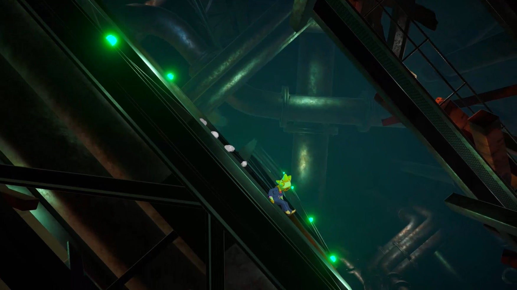 沈みゆく船は物語の進行で船内が傾いたり水位が増減するなど変化するため、同じ場所でも通るタイミングによって地形やギミックの動きも変化します。これらの変化を活用し、時には謎解きを行い、時にはアクションを駆使しながら脱出を目指してください。