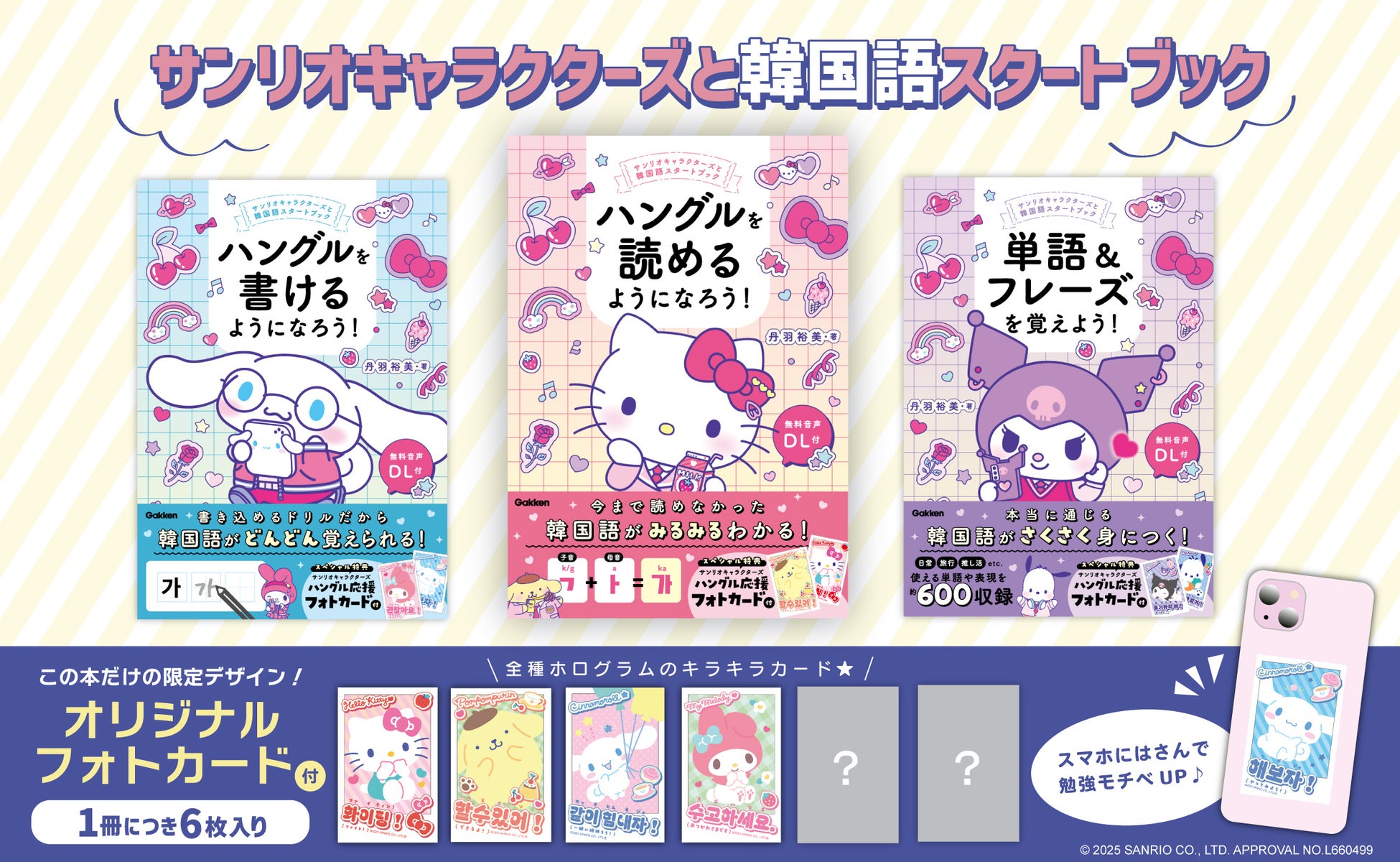 【フォトカードのスペシャル特典付き】Gakkenから『サンリオキャラクターズと韓国語スタートブック』が3冊同時発売!