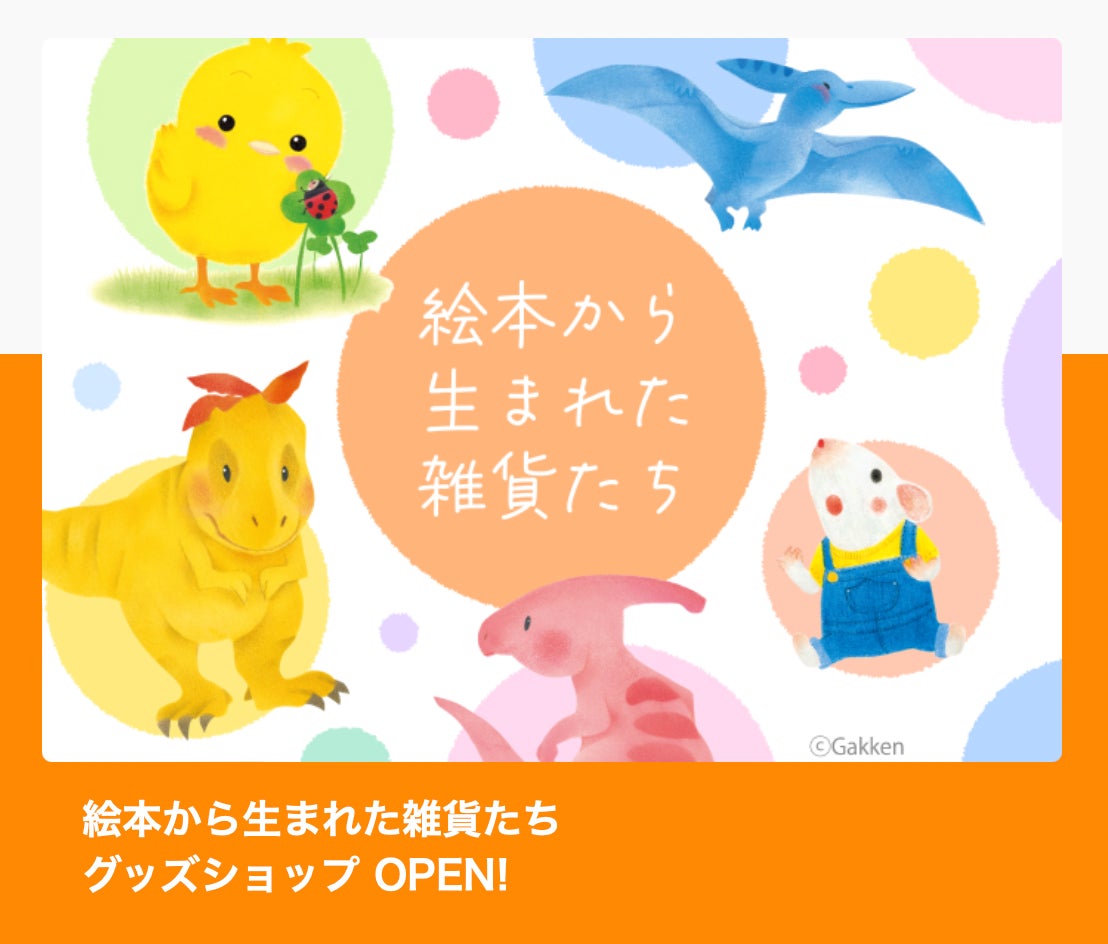 株式会社 学研ホールディングス(東京・品川/代表取締役社長:宮原博昭)のグループ会社、株式会社 Gakken(東京・品川/代表取締役社長:南條達也)は、2025年4月8日(火)に、ECサイト「かなプロβ」内に絵本グッズショップ『絵本から生まれた雑貨たち』をオープンいたしました。人気絵本作家・いりやまさとしさんの「ぴよちゃん」「ダイナソーキッズ」や、とねさとえさんの「ねずくん」の複製原画やグッズを販売いたします。