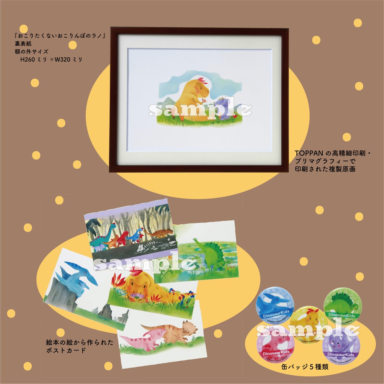 「ダイナソーキッズ」シリーズでも、複製原画や缶バッジ、ポストカードなどを販売しています。