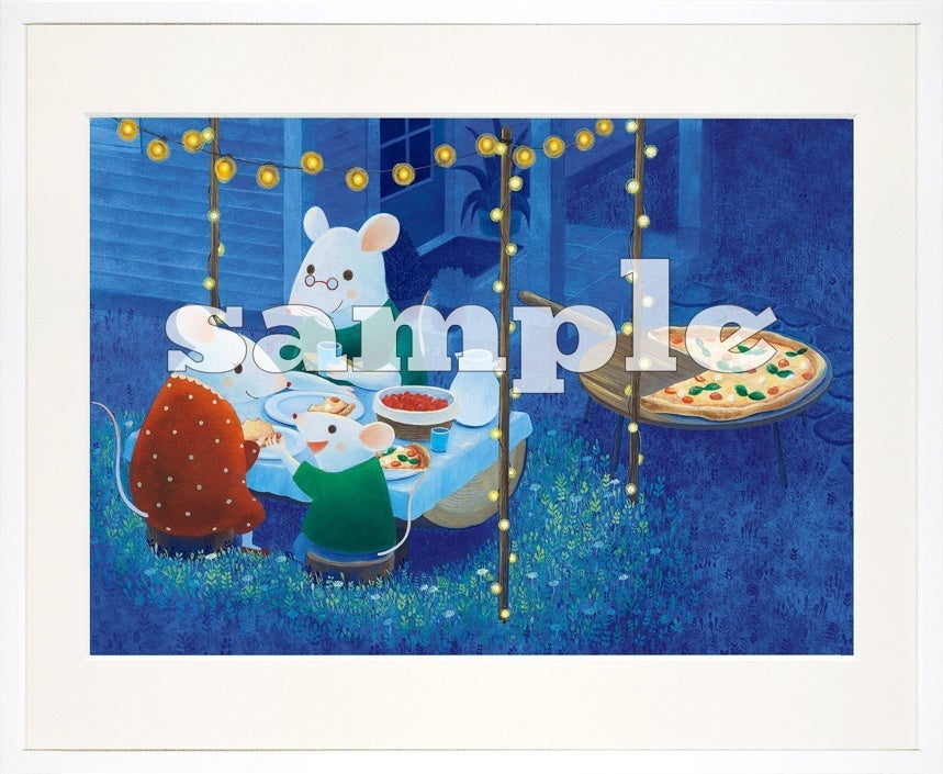 『ねずくんとパパのおるすばん』「青の晩餐」:四つ切・額の外サイズ(H364×W440mm)