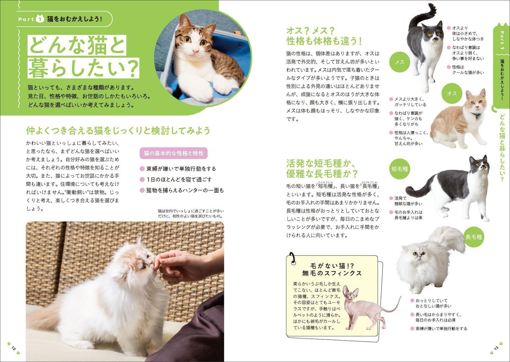 人気の猫種や保護猫のおむかえ、シニア猫のお世話、猫と飼い主の命を守るための防災の備えなど、はじめて猫を飼いたいと考えている方はもちろん、すでに猫と暮らしている方にもぜひ読んでほしい最新情報も満載。愛猫との末永く幸せな暮らしの第一歩を、この本から始めてみませんか?