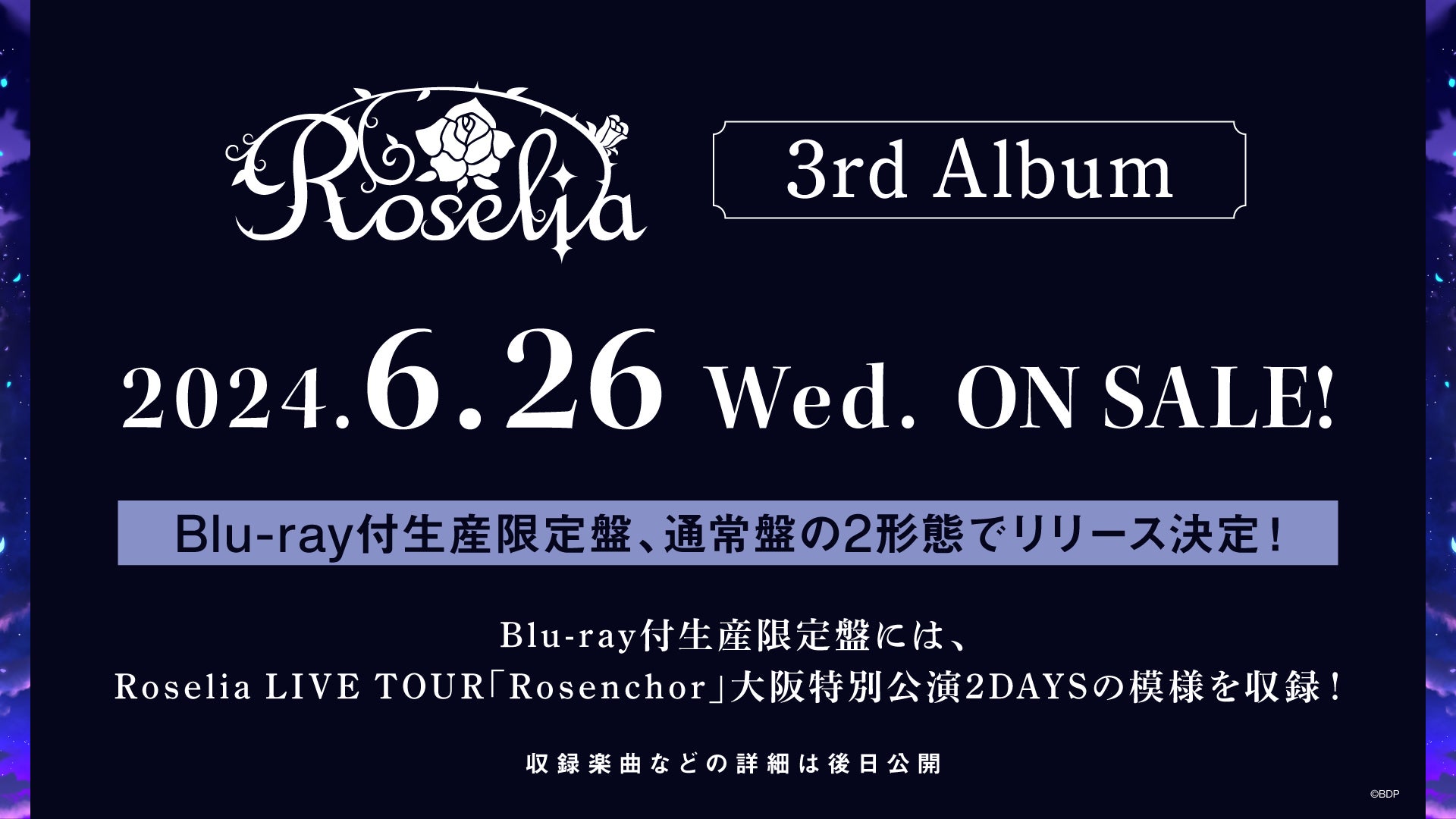 Blu-ray付生産限定盤には、Roselia LIVE TOUR「Rosenchor」大阪特別公演2DAYSのライブ映像が収録されます。