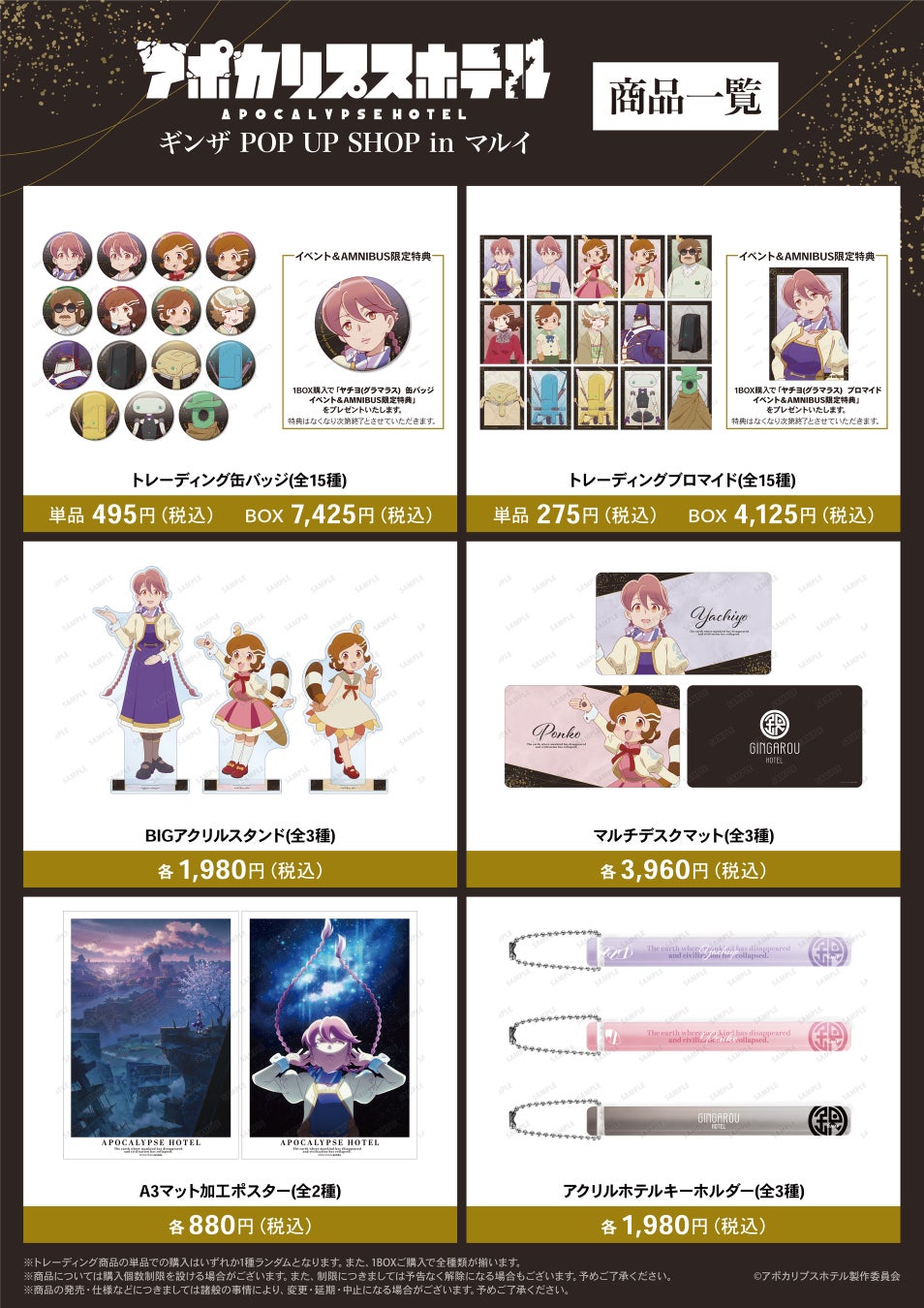 漫画・アニメのオリジナルグッズを販売する「AMNIBUS」を運営する株式会社アルマビアンカは「アポカリプスホテル」 ギンザ POP UP SHOP in マルイを開催いたします。