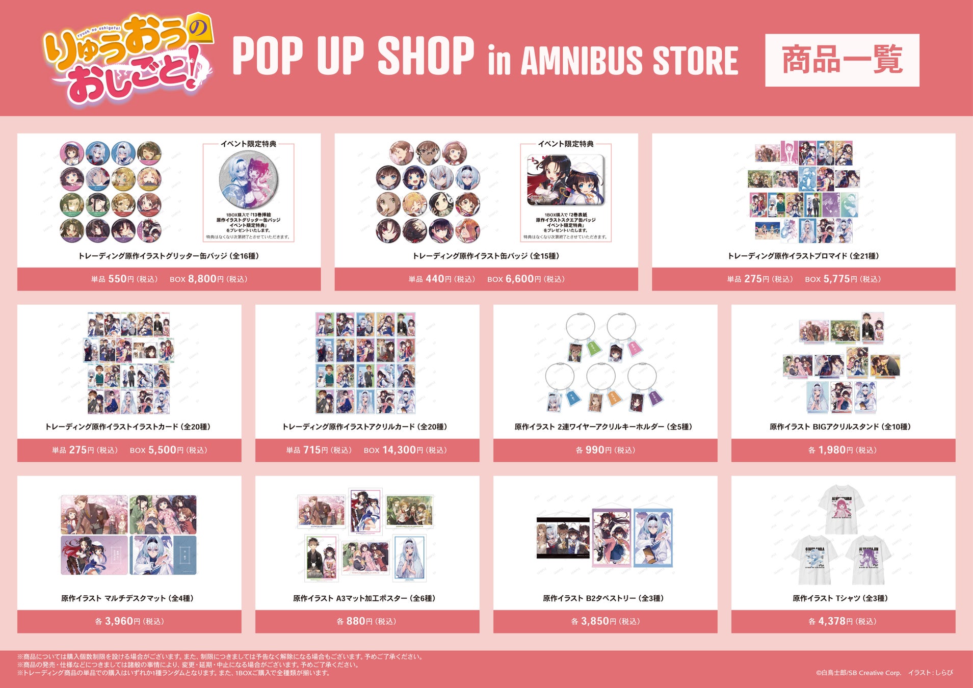 今回のイベントでは、『りゅうおうのおしごと!』より新規グッズを多数先行販売する他、AMNIBUS STORE購入特典の配布を予定しております。
