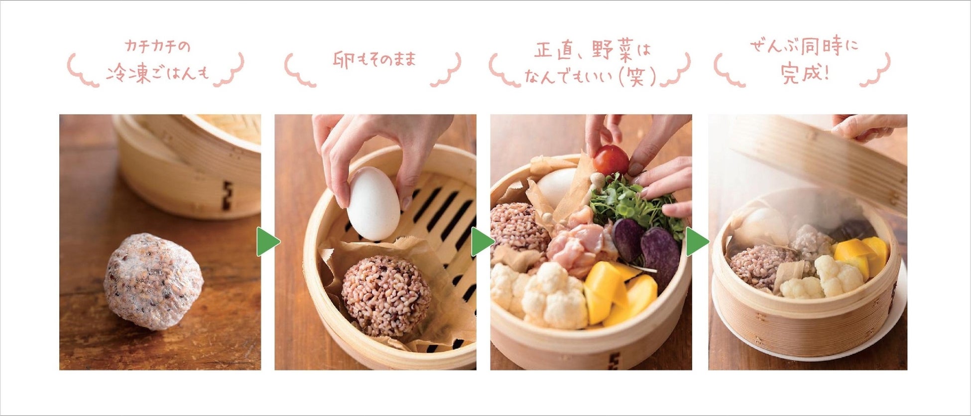 せいろは、料理上手な人だけが使いこなせる上級者向けアイテムと思われがちでしたが、料理ビギナーさんや、忙しくて料理をする時間がない人にこそ使ってもらいたい便利な調理器具。料理をする気力ほぼゼロの日でも、家にある食材を適当に切って、せいろに詰めて、お湯を沸かしたお鍋の上にのせるだけで、どんな食材もふっくらしっとりおいしく蒸し上がります。野菜をたっぷり食べられて、余計な調味料や油を使わなくても十分においしいので、ダイエットや美肌にもオススメ。まさに人生に役立つ一冊です。