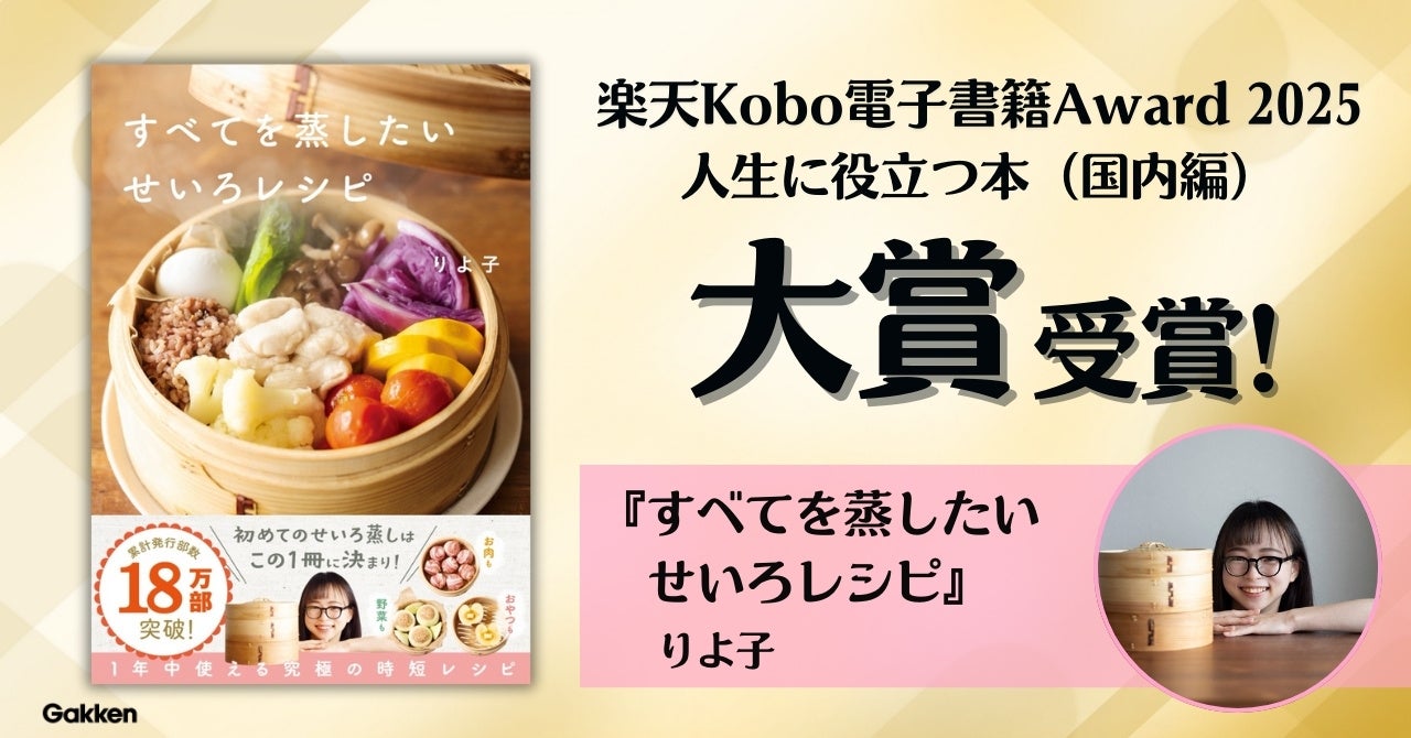 株式会社 学研ホールディングス(東京・品川/代表取締役社長:宮原博昭)のグループ会社、株式会社 Gakken(東京・品川/代表取締役社長:南條達也)が発行する『すべてを蒸したい せいろレシピ』が、2025年5月9日(金)に「楽天Kobo電子書籍Award 2025」において、[人生に役立つ本(国内編)]の大賞を受賞いたしました。
