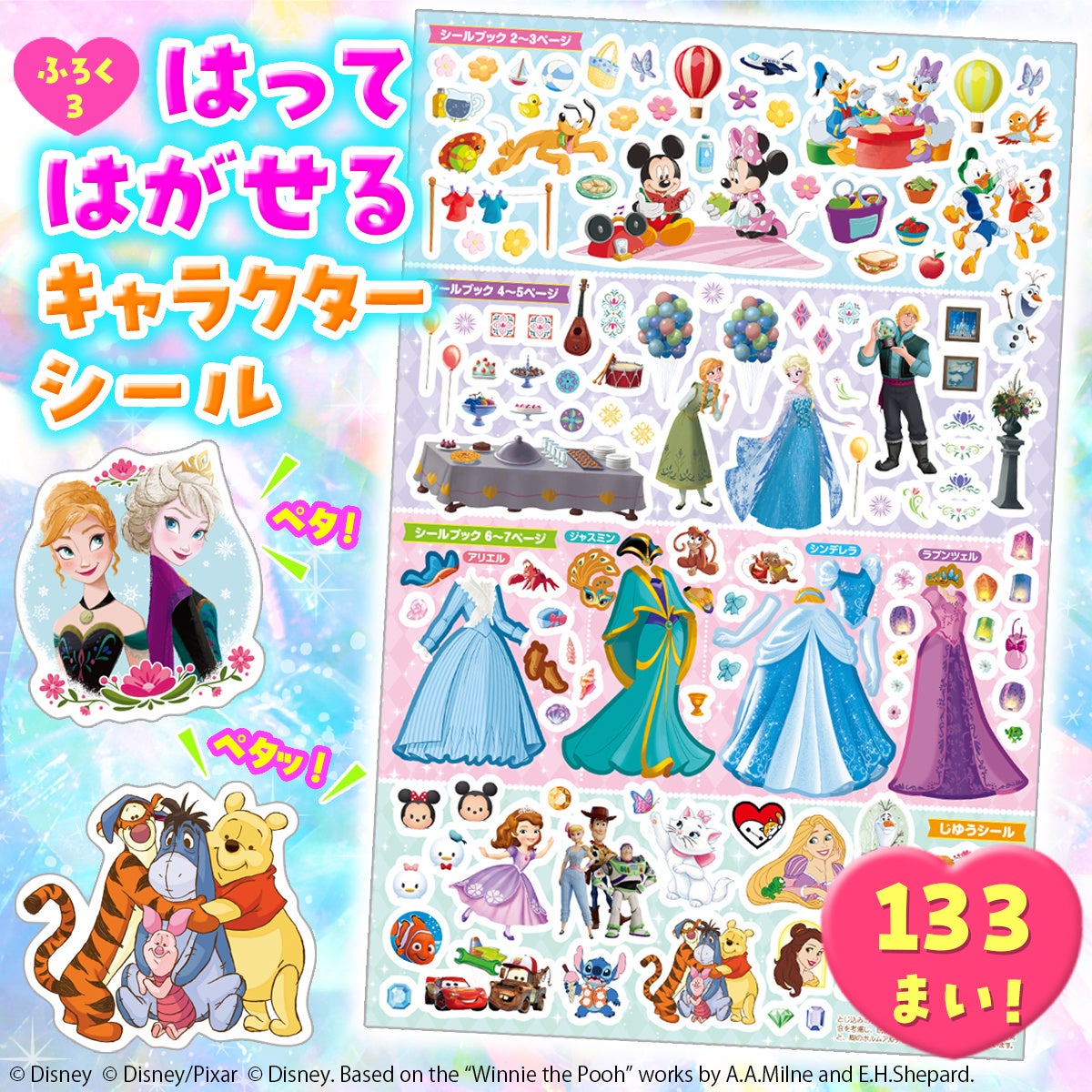好きなところにはってはがして、くり返し遊べるキャラクターシールがたっぷり133枚!! エルサとアナ、ミッキー&フレンズ、ラプンツェル、プーさんをはじめ大人気のキャラクターがいっぱいです。