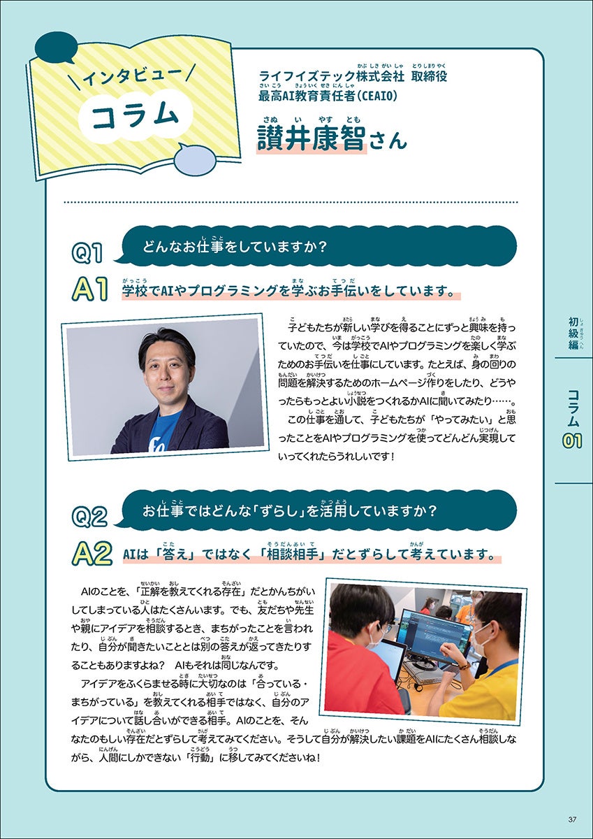 「常識にとらわれない発想」を、実社会で仕事として活かしている大人3名のインタビューを掲載! 自由に発想する力は遊びの場だけで使うものではなく、大人になって実社会で働くときにも必要な能力であると、学ぶことができます。