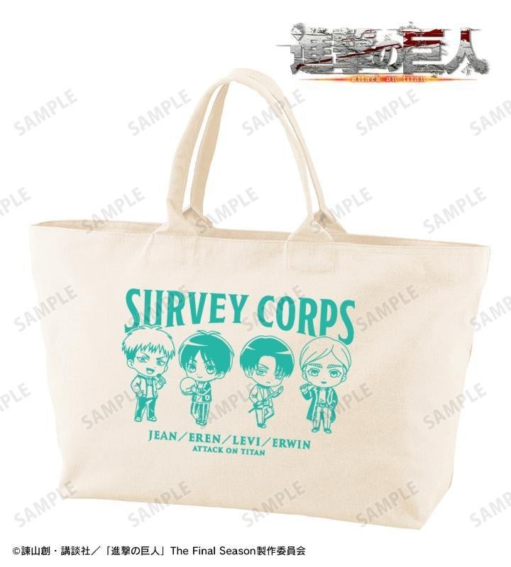 エレン、ジャン、エルヴィン、リヴァイのちびキャライラストをBIGなジップトートバッグに仕上げました。