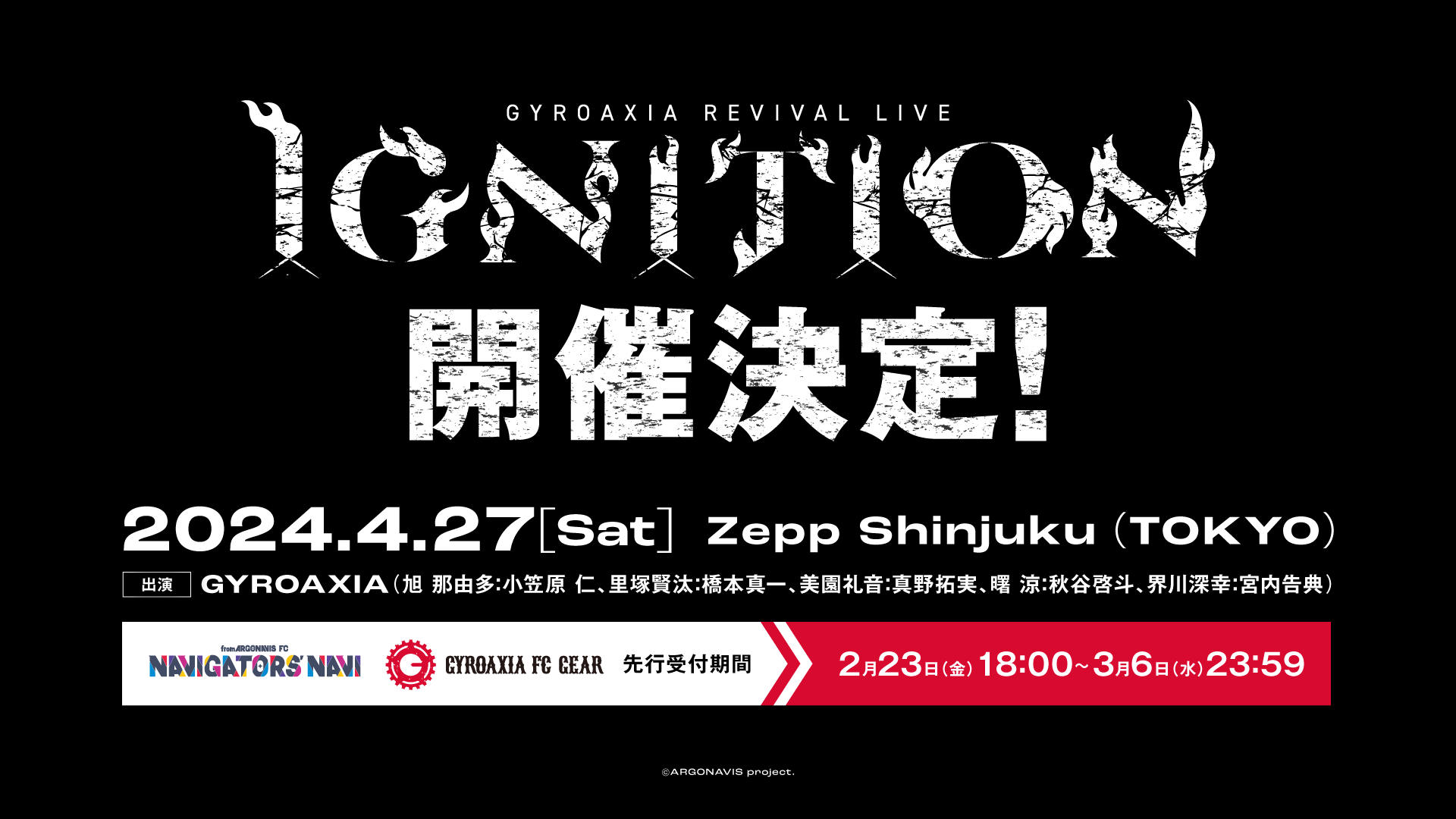 2020年9月12日に無観客での開催となった、GYROAXIA ONLINE LIVE -IGNITION- を有観客でリバイバル開催決定!3月6日(水)23:59までFC先行受付実施中。