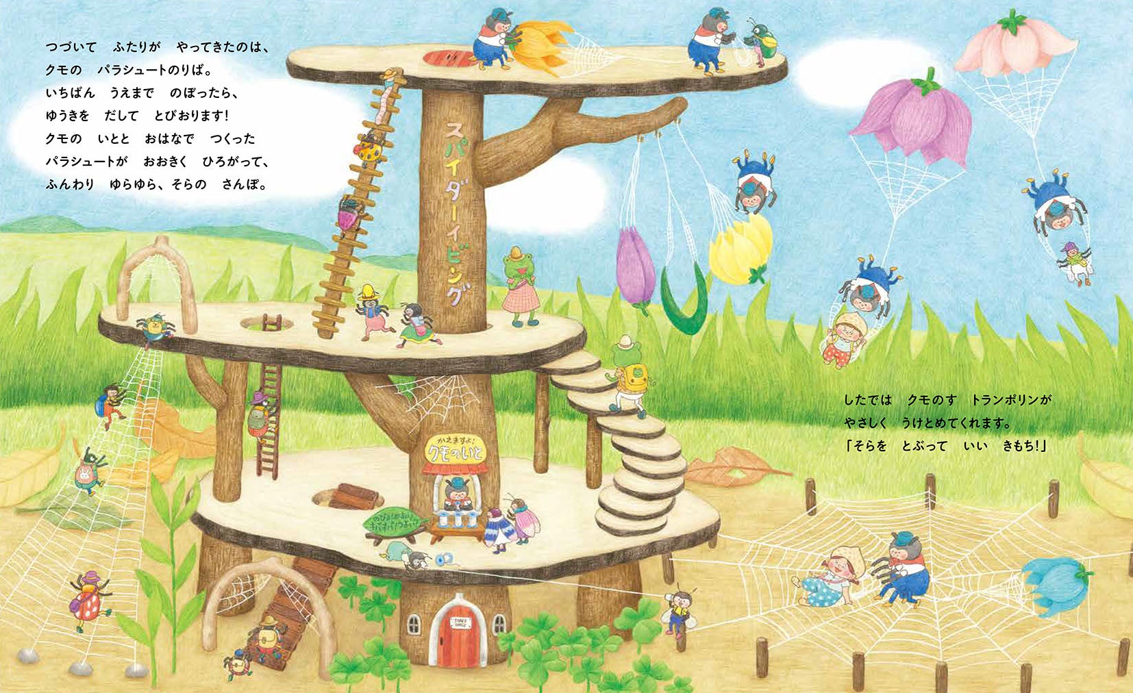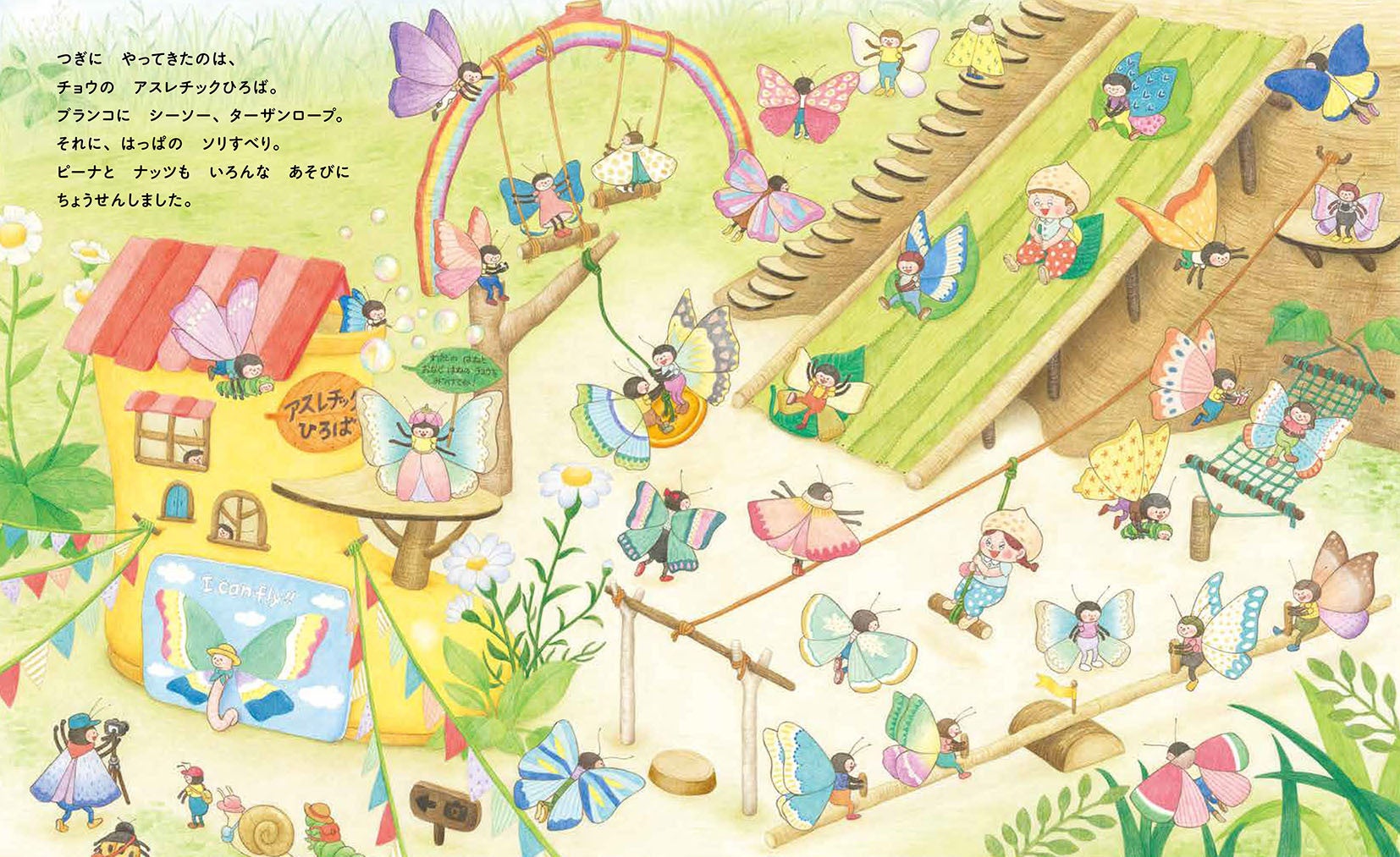 森のこびと、ピーナとナッツが新しくできた「むしむしゆうえんち」に出かけます。チョウのアスレチック広場に、クモのパラシュート、アリの巣めいろなど、楽しいアトラクションがいっぱい! みんなも一緒に愉快な「むしむしゆうえんち」で遊びませんか?