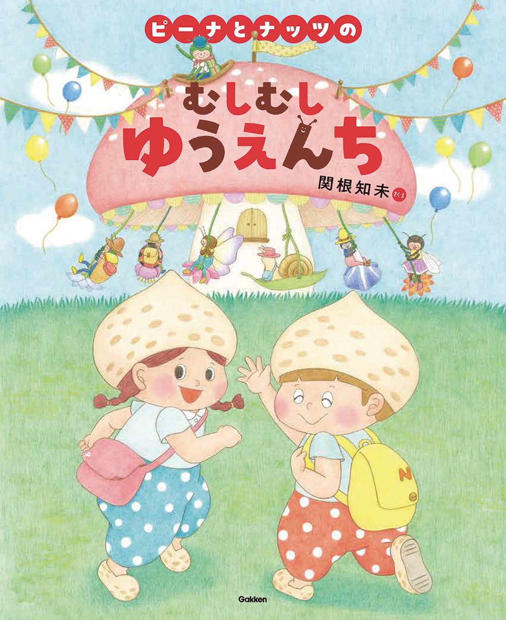 色鉛筆のカラフルな色づかいや、ユーモアたっぷりのかわいいキャラクターで人気急上昇の絵本作家・関根知未さん。お子さんのために楽しい虫の絵本を描きたいという思いから、本書を描きました。可愛いピーナッツの殻の帽子をかぶった主人公ピーナとナッツは、その名のとおり、ピーナッツに着想を得ました。じつは関根さん、ピーナッツの名産地・千葉県在住なのです。虫たちの遊園地のお話がどのように生まれたのかは、インタビューをお読みください。