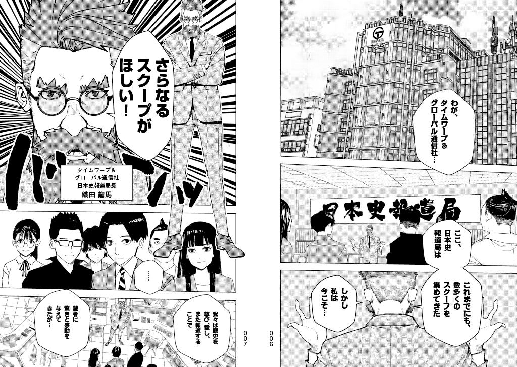 時は未来――デバイスを過去に送ることで、歴史の真実を報道してきた「タイムワープ&グローバル通信社 日本史報道局」は、人を過去に送り込める新しいガジェットを開発。記者たちを直接、希望する時代・場所にタイムワープさせることが可能になった! 最新(?)のAIロボットをおともに、記者たちはスクープを求め、日本史の「現場」へと取材に飛び立つ――。