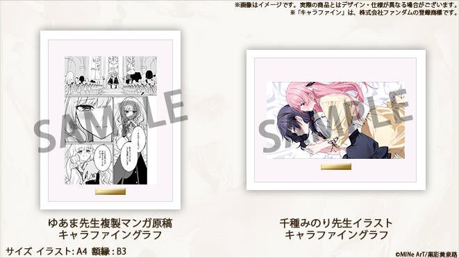 その他にも、ソレオス限定バージョンの「アクリルスタンド」や、ゆあま先生のマンガ原稿・千種みのり先生のイラストを使用した「キャラファイングラフ」、楽曲『テトリス』でおなじみの柊マグネタイトさんが作曲したメインテーマ曲「フェイクマリッジ」のデモ音源など、豪華制作陣が揃っている本作ならではのアイテムをご用意しています!
