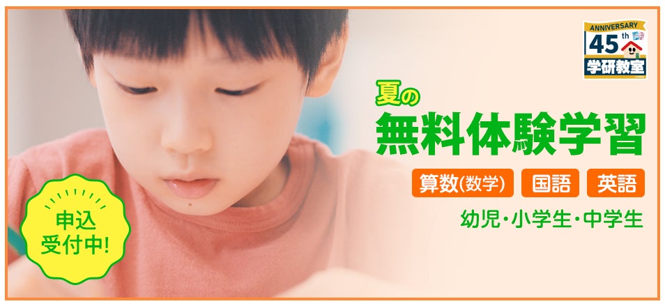株式会社 学研ホールディングス(東京・品川/代表取締役社長:宮原博昭)のグループ会社、株式会社学研エデュケーショナル(東京・品川/代表取締役社長:川端篤)では、「認知能力」と「非認知能力」の両方を育む「学研教室」にて、夏の無料体験学習を全国で実施いたします。ぜひ、この機会にお近くの学研教室をご体験ください。