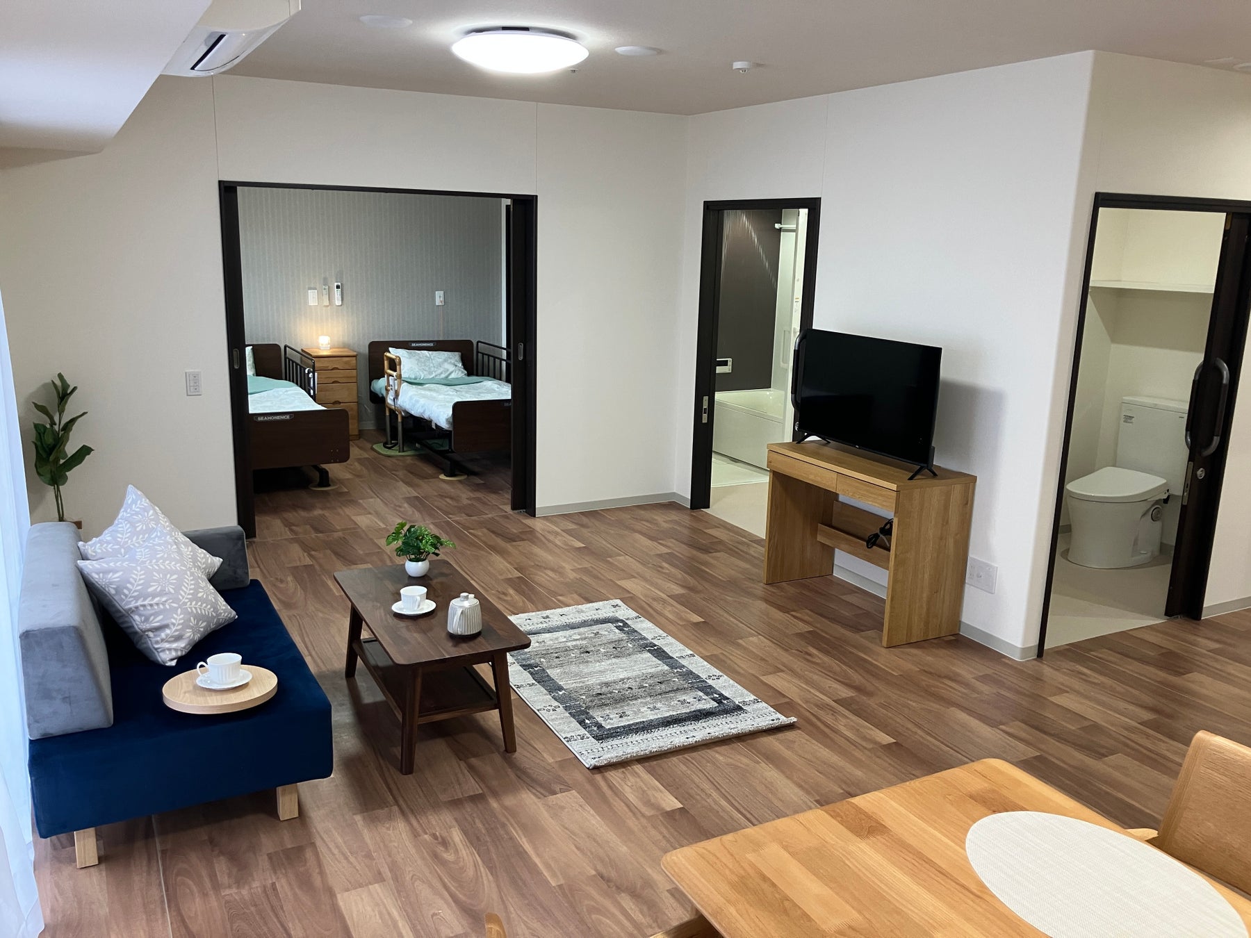 居室設備:トイレ、洗面台、クローゼット、エアコン、照明、スプリンクラー、ナースコール、リズムセンサー(一部)、浴室(一部)、洗濯機置場(一部)、ミニキッチン(一部)