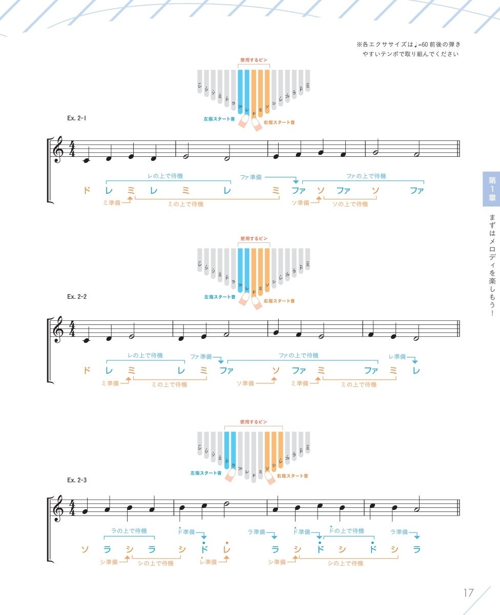 単音を弾く/左右交互に弾く/同じ指の連続/離れたピンを弾く/跳躍の連続 ほか