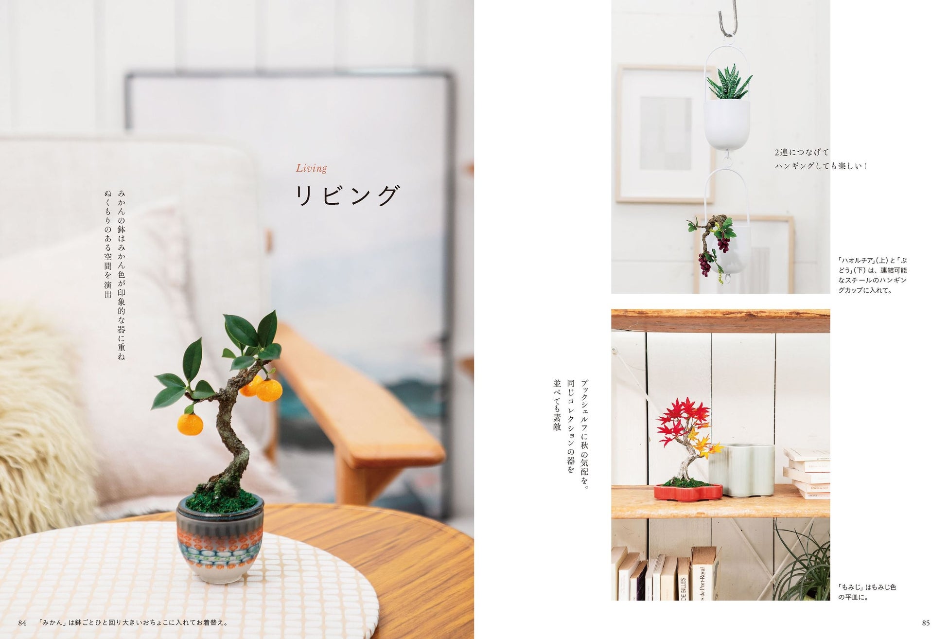 本書は盆栽の世界を紹介しながら、初心者でも気軽にトライできる「ミニ盆栽」の作り方を、豊富な写真とともに丁ねいにご紹介。さらに水やりなどの世話がいらず、土が無いため場所を選ばずに飾れるクラフト盆栽ならではのインテリアや、テーブルコーディネートの提案も盛り込みました。
