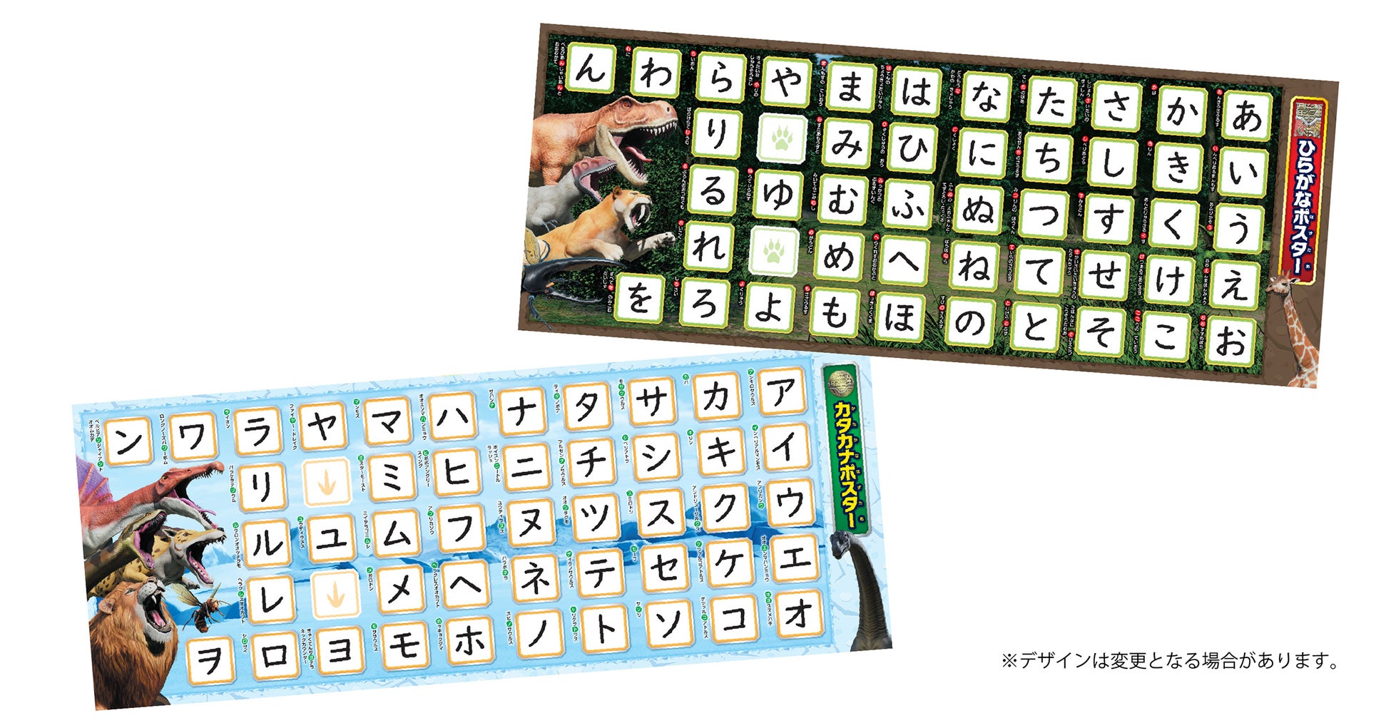つなげてワイドに楽しめるひらがな・カタカナポスターは、おうちに飾ってかっこいい! いつでも最強王と一緒にひらがなを復習できます。