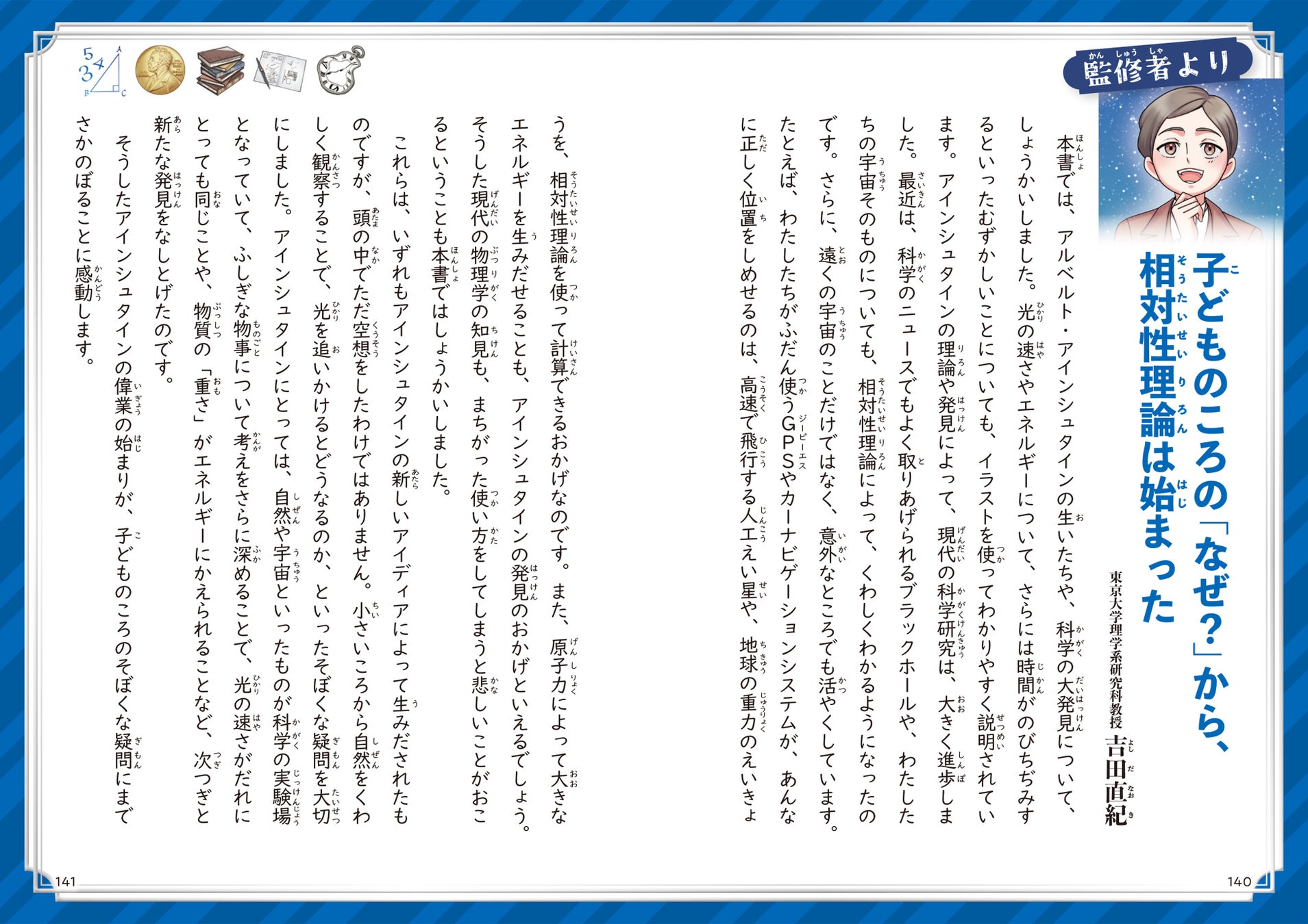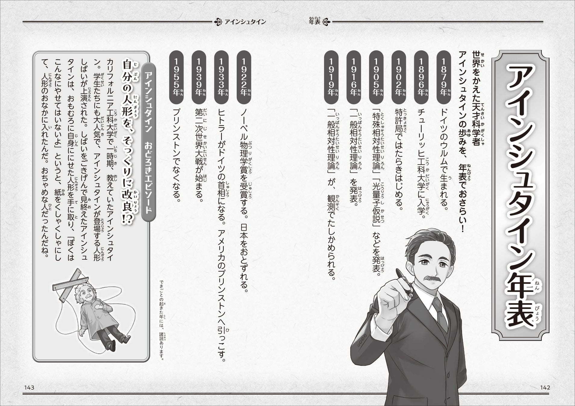 巻末に、本書監修の東京大学の吉田直紀教授の言葉と、年表を掲載。物語を読んだ後に、アインシュタインの人生の歩みをおさらいできます。
