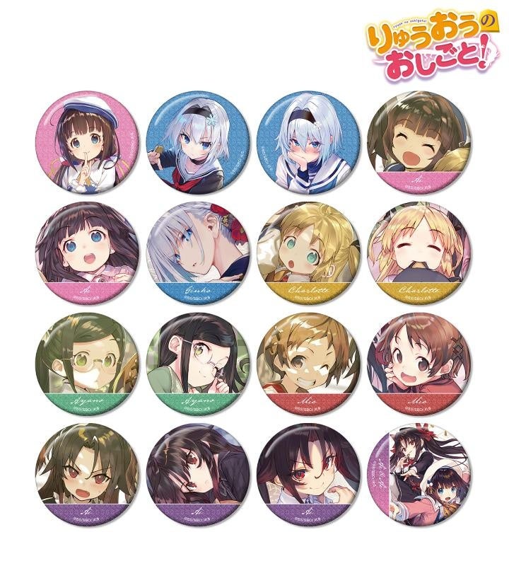 九頭竜 八一、雛鶴 あい、空 銀子、清滝 桂香、シャルロット・イゾアール、貞任 綾乃、水越 澪、夜叉神 天衣、供御飯 万智、月夜見坂 燎の原作イラストを缶バッジに仕上げました。