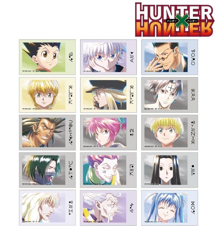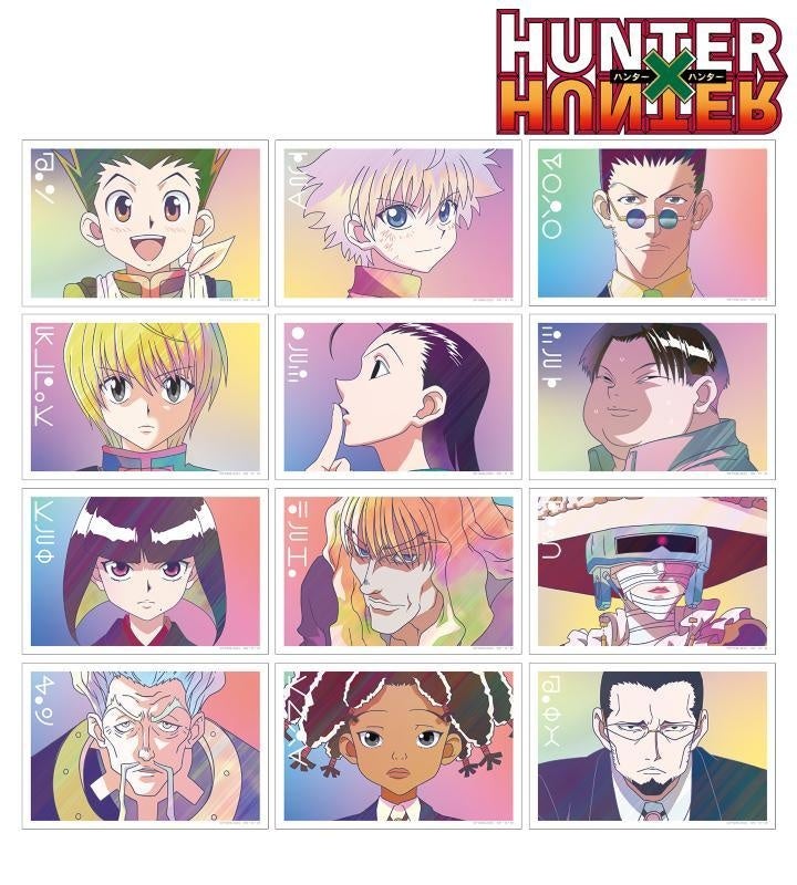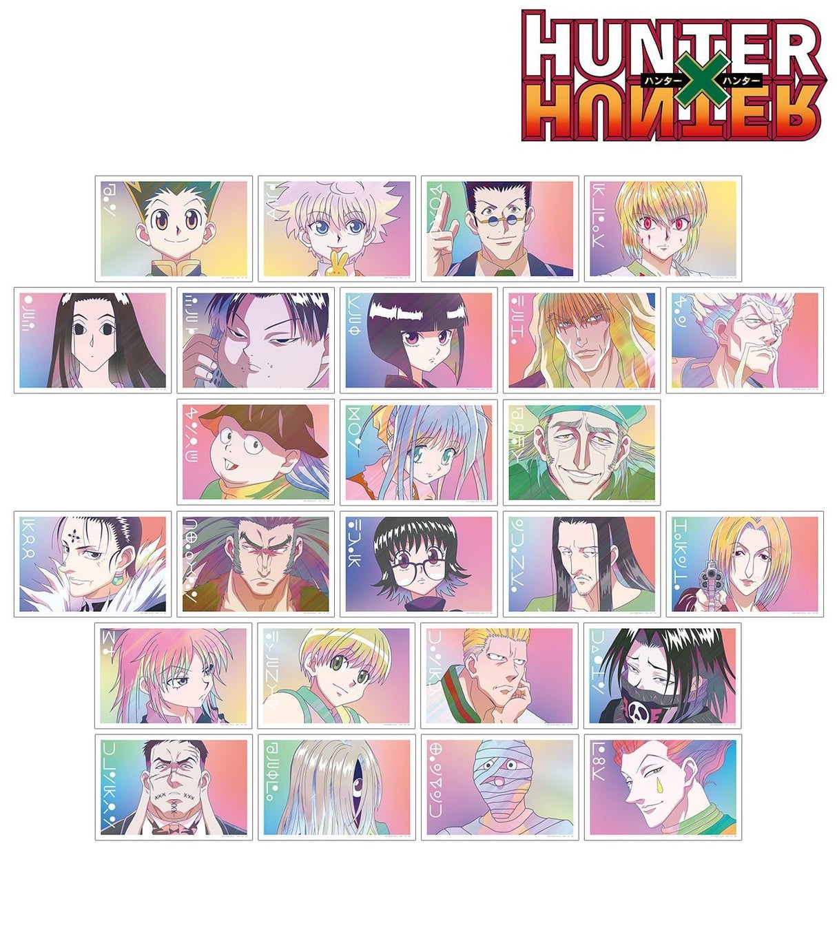 ゴン、キルア、レオリオ、クラピカ、イルミ、ミルキ、カルト、シルバ、ゼノ、センリツ、ネオン、殺し屋、クロロ、ウボォーギン、シズク、ノブナガ、パクノダ、マチ、シャルナーク、フィンクス、フェイタン、フランクリン、コルトピ、ボノレノフ、ヒソカのイラストを新たなタッチで魅力的に表現し、クリアカードに仕上げました。