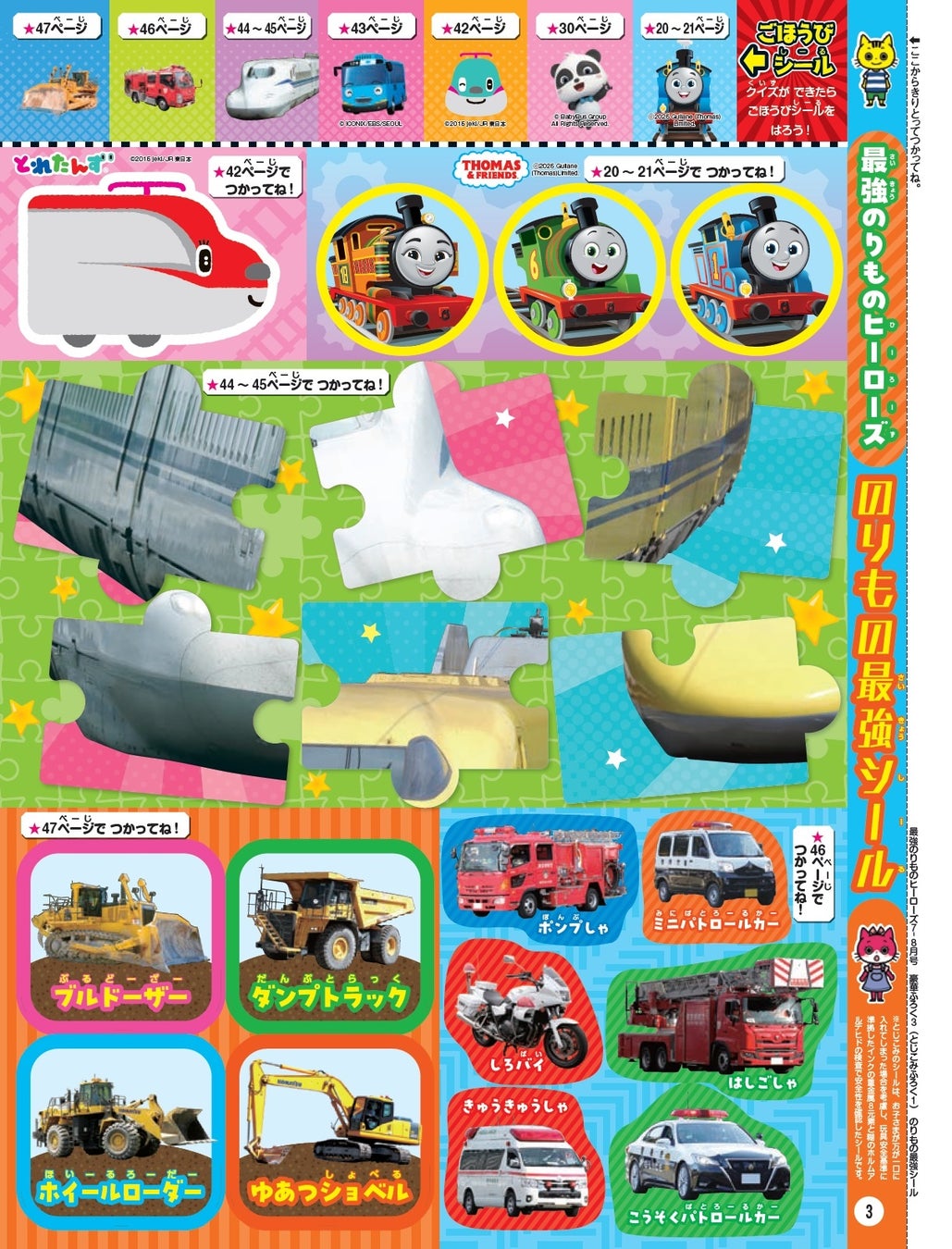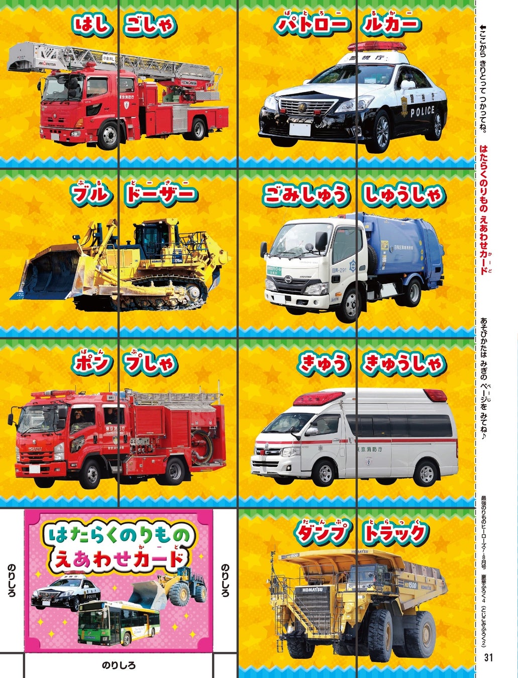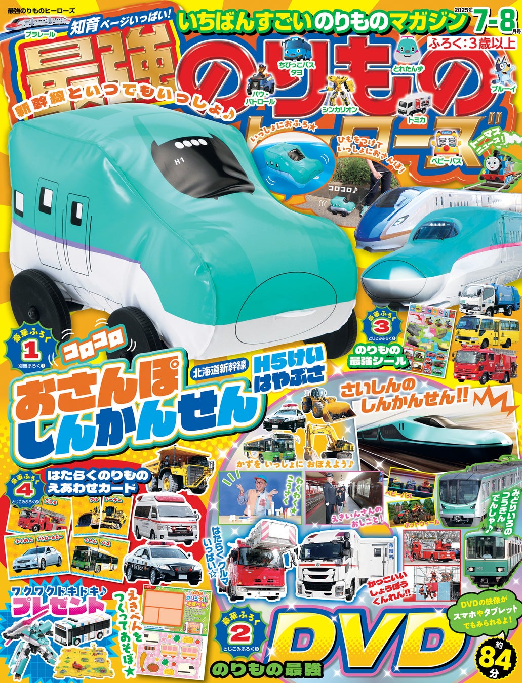 「コロコロおさんぽしんかんせん H5けいはやぶさ」、約84分の「のりもの最強DVD」、「はたらくのりもの えあわせカード」など、最新号ものりもの超いっぱい!