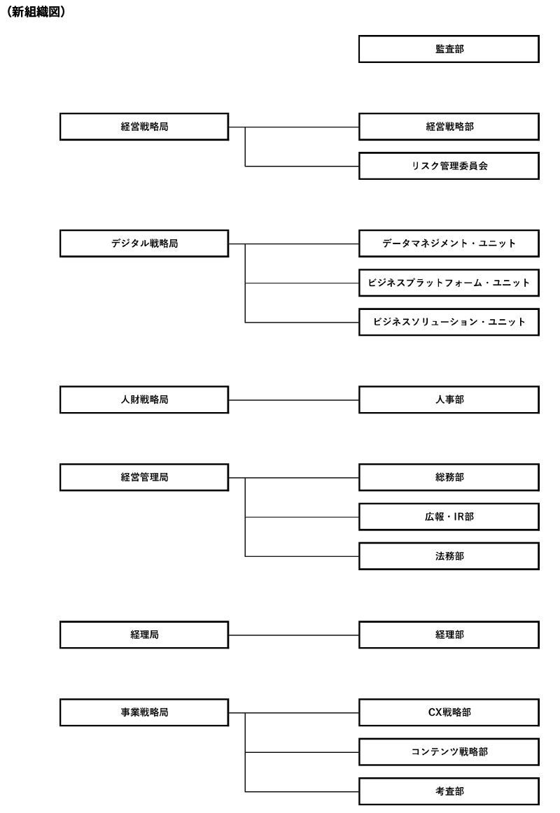 当社は、(1)顧客起点の会員事業としての成長、(2)コンテンツ価値の最大化、(3)経営基盤の強化および業務の効率化の方針に沿って、組織改定を行ないました。改定のポイントは以下の通りです。