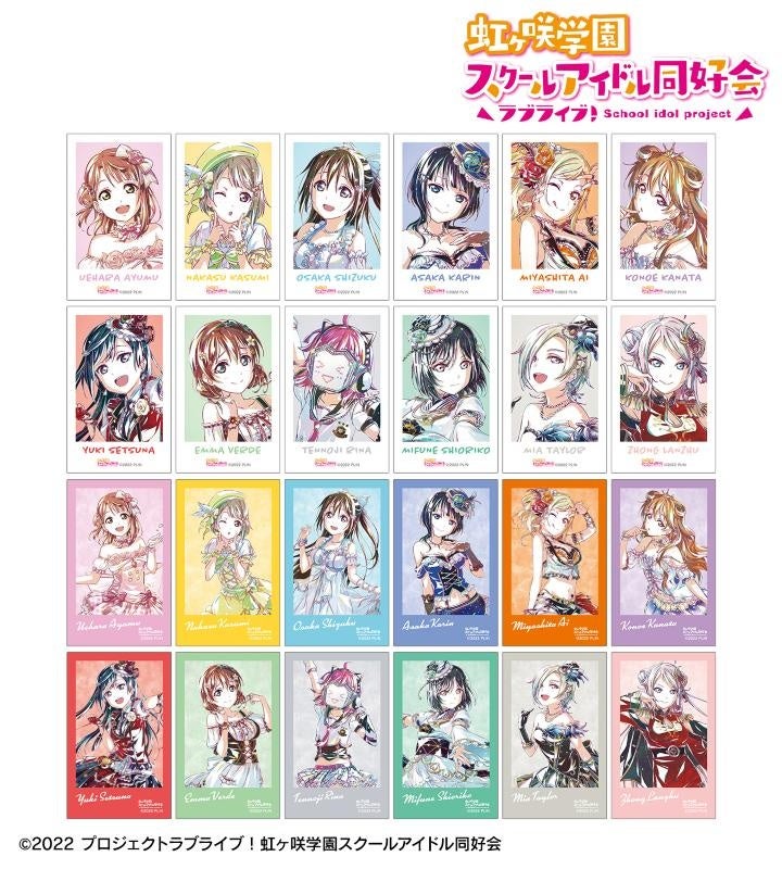 種類 :全12種(上原歩夢、中須かすみ、桜坂しずく、朝香果林、宮下 愛、近江彼方、優木せつ菜、エマ・ヴェルデ、天王寺璃奈、三船栞子、ミア・テイラー、鐘 嵐珠)